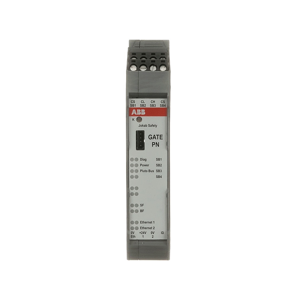 ABB Bussystem Systemschnittstelle Medien Gateway Typ GATE-PN GATE-PN Pluto-Gateway PROFINET Gateway PROFINET Pluto Gateway ist ein Protokollumsetzer für die bidirektionaleKommunikation zwischen der Sicherheits-SPS Pluto undanderen Feldbussystemen. Das Gerät kann an beliebige busfähige Plutos angeschlossen werden. Es bietet eine gemeinsame Schnittstelle mit Pluto, so dass das selbe Programmierkabel verwendet werden kann. Hersteller ABB Nr. 2TLA020071R9300 Typ GATE-PN EAN Nr.7350024480276 Warengruppe ABB EPR Produkte