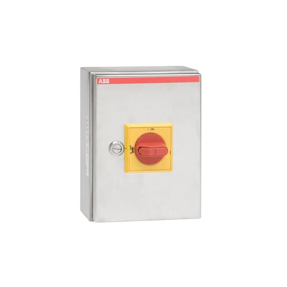 ABB Lasttrennschalter Typ OTR16A6B OTR16A6B Sicherheitsschalter 6-polig 7,5 kW 400V m. rot-gelbem Griff Die Sicherheitsschalter im Gehäuse von ABB unterstützen Sie bei der Bereitstellung eines sicheren Arbeitsumfelds. Das umfangreiche Produktportfolio umfasst gekapselte Schalter mit Schutzarten von IP54 bis IP67. Unsere Sicherheitsschalter schalten Stromstärken von 16 A bis 1200 A (IEC) und Bemessungsleistungen von 7,5 kW bis 1200 kW bei Spannungen bis zu 690 V (AC23-A). Zudem verfügt die Serie über IEC und UL Zulassungen. Das Angebot von ABB umfasst seitlich- und frontbetätigte Sicherheitsschalter im Kunststoffgehäuse, Stahlgehäuse, Edelstahlgehäuse sowie im Aluminiumgehäuse. Des Weiteren bietet das Produktportfolio individuelle Lösungen für den EMV-Bereich (elektromagnetische Störungen) an. Die simple Handhabung macht aus den Sicherheitsschaltern eine optimale Lösung für die unterschiedlichsten Anwendungen. Hersteller ABB Nr. 1SCA022745R8160 Typ OTR16A6B EAN Nr.6417019242026 Warengruppe ABB Lastschalter