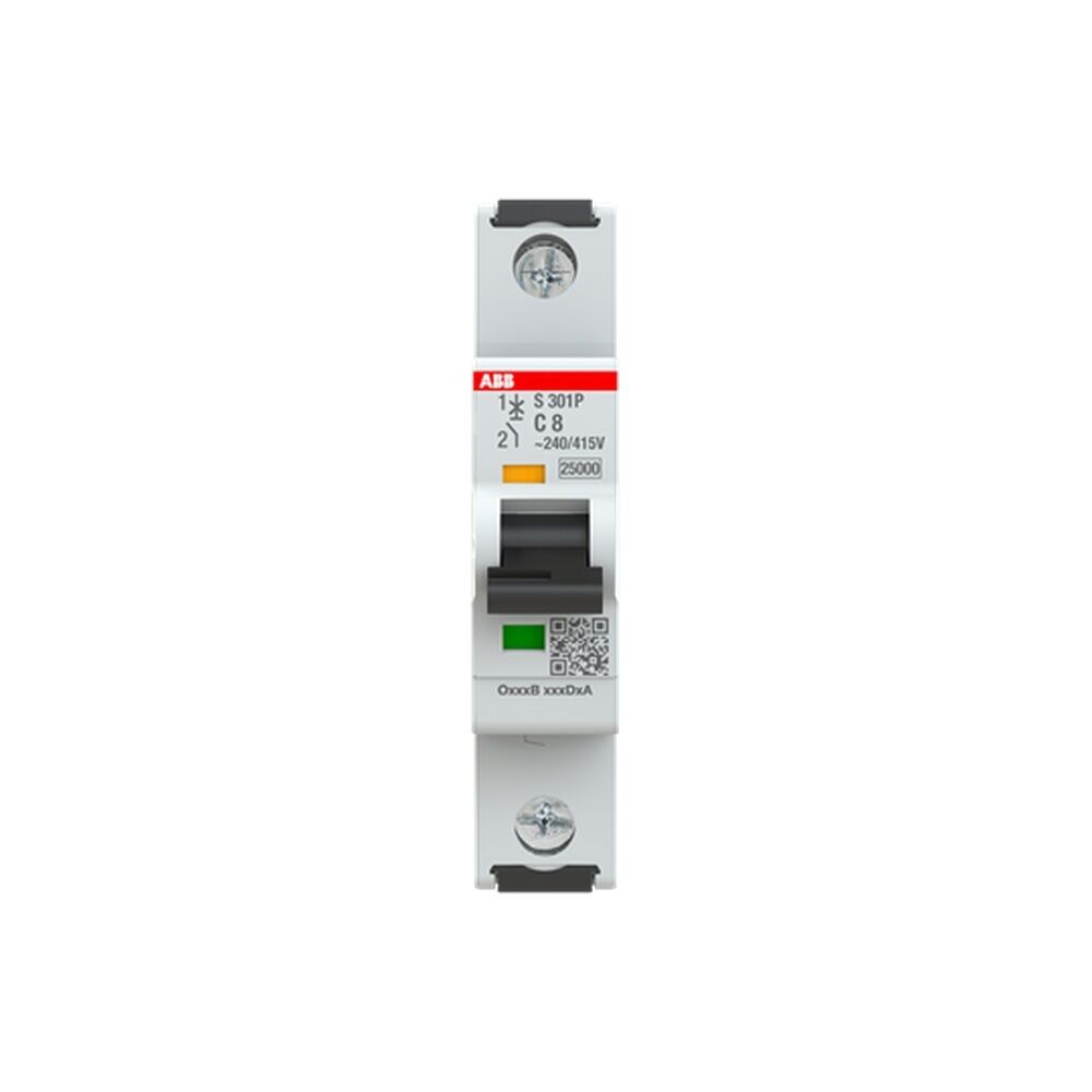 ABB Leitungsschutzschalter Typ S301P-C8 S301P-C8 Sicherungsautomat C-Char., 25kA, 8A, 1P Die Sicherungsautomaten der Baureihe S300P schützen Kabel und Leitungen vor Überlast und Kurzschluss gemäß DIN VDE 0100-430 und DIN VDE 0100-530. Sie erfüllen die Bauvorschriften DIN VDE 0641-11 bzw. IEC/EN 60898-1, DIN VDE 0660-101 bzw. IEC/EN60947-2 und UL1077. Ihre patentierte Anschlussklemme sorgt für einfache und sichere Kontaktierung und Handhabung mittels einer Druckplatte. Die Montage und Demontage auf der Hutschiene ist werkzeugfrei und auch aus dem Sammelschienenverbund möglich. Die Sicherungsautomaten verfügen über eine frontseitige Fehleranzeige zur Unterscheidung zwischen Auslösung im Fehlerfall und manuellem Ausschalten. Die ausführliche technische Dokumentation kann über einen QR-Code auf der Gerätefront schnell aufgerufen werden. Zahlreiche Zulassungen und ein umfassendes Zubehörsortiment machen den S300P fit für den weltweiten Einsatz in anspruchsvollen Anwendungen. Hersteller ABB Nr. 2CDS381001R0084 Typ S301P-C8 EAN Nr.4016779080569 Warengruppe ABB Sicherungsautomaten
