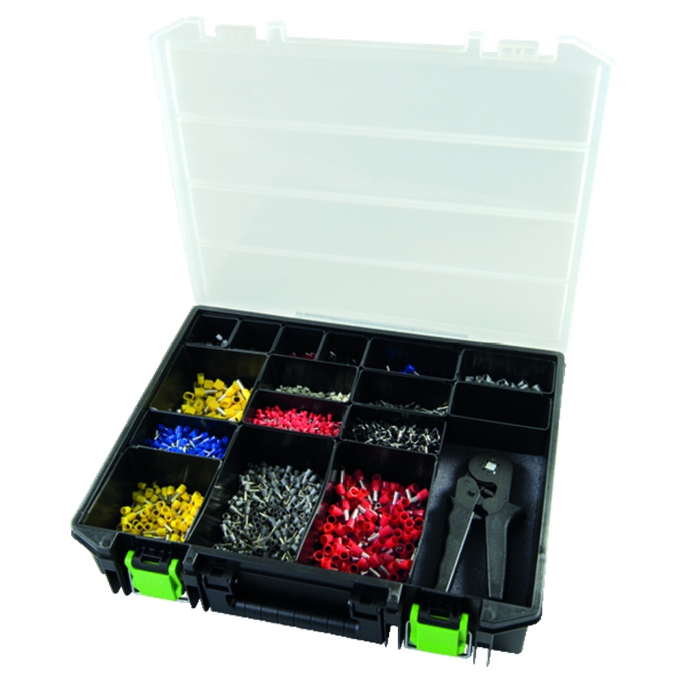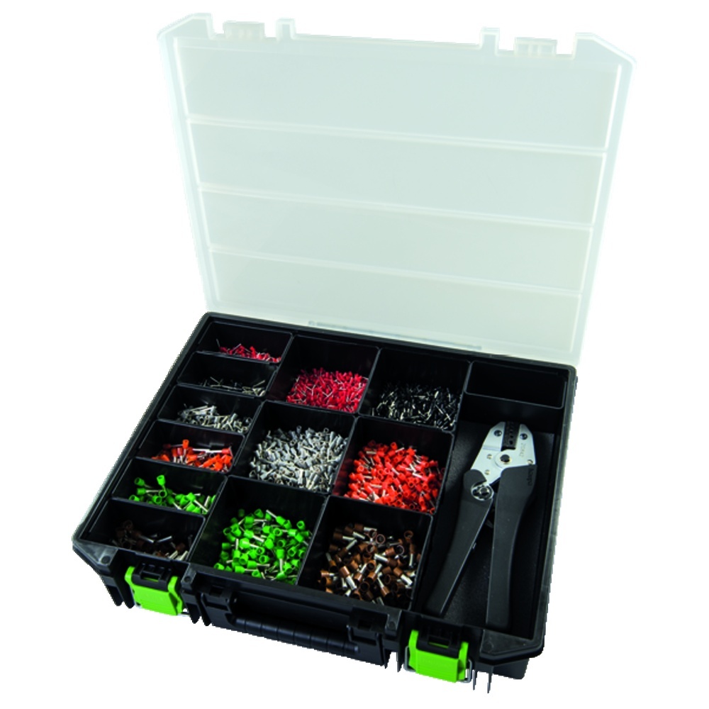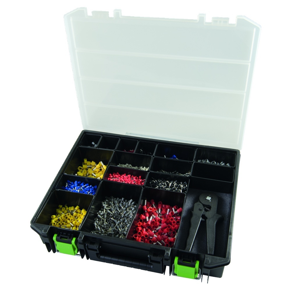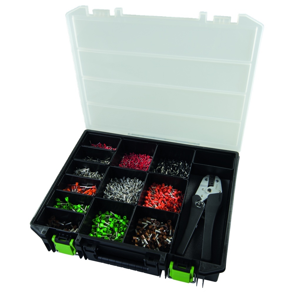 Um abisolierte Enden von Leitungen zu schützen, so dass sie ohne Beschädigung der Einzeldrähte angeschlossen werden können, gibt es die Haupa Aderendhülsen. Die verschiedenen Farben des Schutzkragens gibt Information über den maximalen Draht- bzw. Leiterquerschnitt. Einige der Haupa Aderendhülsen bieten einen Zusätzlichen Knickschutz und der konische Kragen erleichtert das Einführen in die Hülse u