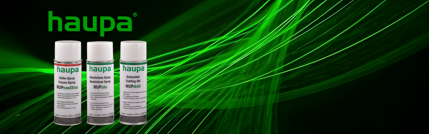 Die Haupa Chemie biete Sprays und Reiniger für verschiedenste Anwendungen. Von Motorenreiniger über Hautschutz bis hin zu Silikon und Zink Spray biete die Haupa Chemie alles was schützt, reinigt und für einen reibungslosen Ablauf an Maschinen und Motoren sorgt. Auch Montagekleber, Konstruktionsklebstoff und Hochtemperatursilikon biete die Firma Haupa in gewohnter hochwertiger Qualität