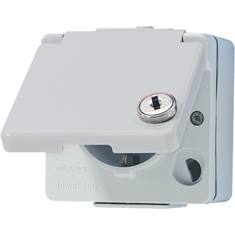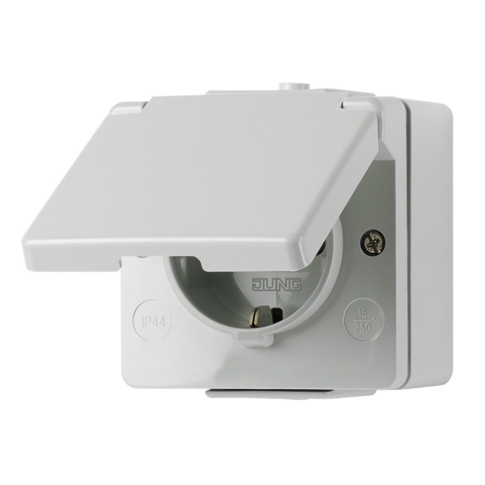 Die Aufputz Serie WG (wassergeschützt) von Jung eignet sich ideal für den Einsatz im Außenbereich, in Kellern, Garagen oder auf Dachböden. Die spritzwassergeschützten Produkte von Jung sind montagefreundlich und widerstandsfähig gegen äußere Einflüsse. Je nach Typ sind sie beleuchtbar sowie durchgängig beschriftbar und bestehen aus bruchsicherem Thermoplast bzw. Duroplast. Jung Wassergeschützt kom