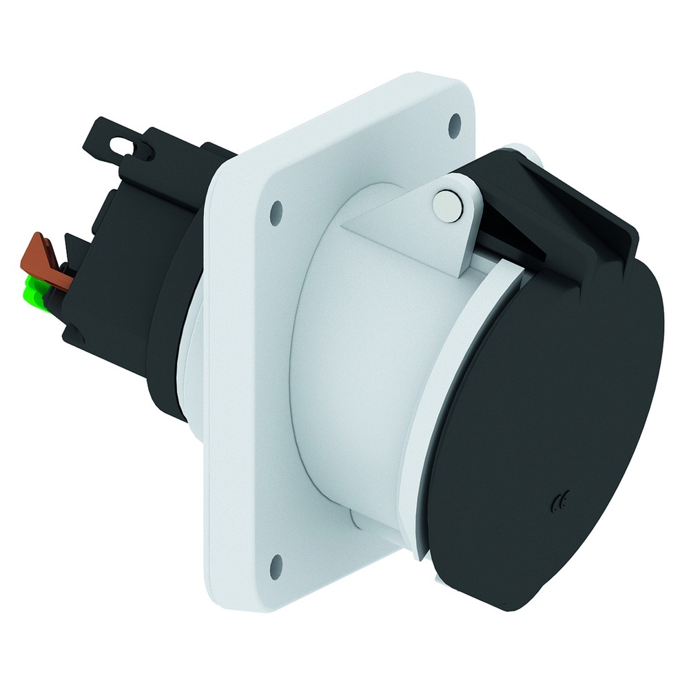 Bals Anbausteckdose 120431 Anbausteckdose Quick-Connect TE geneigt 63A 4p (3P+PE) 500V (480 bis 500V) 7h IP44, Kennfarbe schwarz RAL 9005, Flansch- und Befestigungsmaß Flansch 114x114 mm, Befestigung 90x90 mm Typ 120431 EAN Nr. 4024941000017 Warengruppe Bals Anbausteckdosen