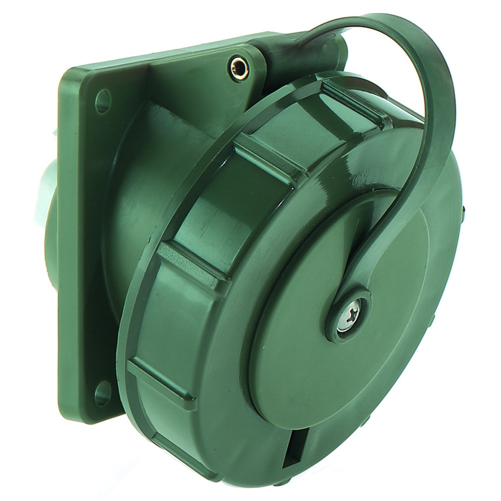 Bals Anbausteckdose 12236 Anbausteckdose Quick-Connect TN geneigt 16A 5p (3P+N+PE) 50V ( 50V) 2h IP67 über 300 bis einschließlich 500Hz, Kennfarbe bronzegrün RAL 6031-F9, Flansch- und Befestigungsmaß Flansch 85x85 mm, Befestigung 70x70 mm, Kontaktträger/Kontakte Kontaktträger aus hochwärmebeständigem Material, die Kontakte sind Messing vernickelt, Maximaler Leiterquerschnitt 4,0 qmm, Gehäusematerial Polyamid, Sonstige technische Eigenschaften Die Neigung beträgt 20 Grad. Der Bajonettdeckel ist mit einem Befestigungsband an dem Gehäuse befestigt. Typ 12236 EAN Nr. 4024941122368 Warengruppe Bals Anbausteckdosen
