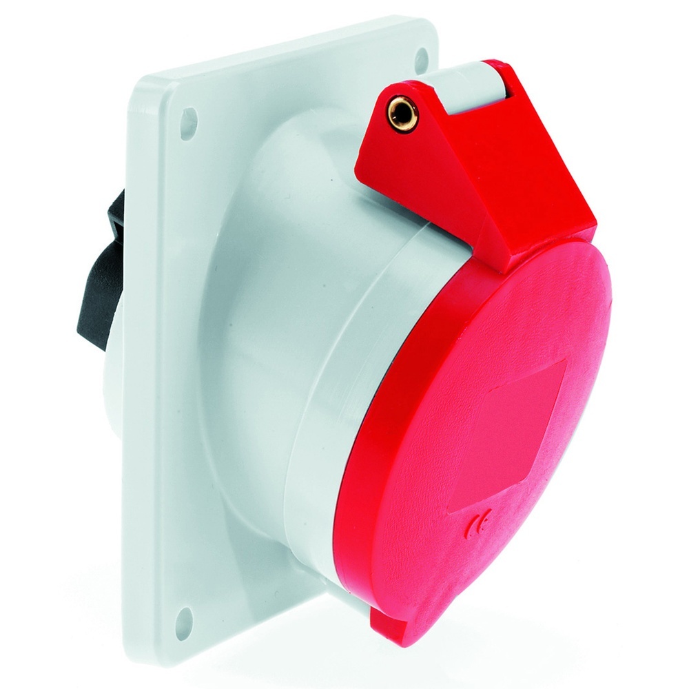 Bals Anbausteckdose 12391 Anbausteckdose TE geneigt 16A 7p (6P+PE) 400V (400V) 6h IP44 50 und 60Hz, Kennfarbe rot RAL 3000, Flansch- und Befestigungsmaß Flansch 100x92 mm (HxB), Befestigung 85x77 mm (HxB), Kontaktträger/Kontakte Kontaktträger aus hochwärmebeständigem Material, die Kontakte sind Messing vernickelt, Maximaler Leiterquerschnitt 4,0 qmm, Gehäusematerial Polyamid, Sonstige technische Eigenschaften Die Neigung beträgt 20 Grad. Typ 12391 EAN Nr. 4024941123914 Warengruppe Bals Anbausteckdosen