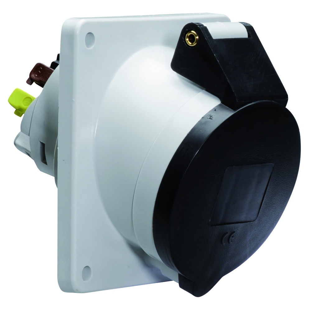Bals Anbausteckdose 12796 Anbausteckdose Quick-Connect geneigt 32A 4p (3P+PE) 500V (480 bis 500V) 7h IP44 50 und 60Hz, Kennfarbe schwarz RAL 9005, Flansch- und Befestigungsmaß Flansch 100x92 mm (HxB), Befestigung 85x77 mm (HxB), Kontaktträger/Kontakte Kontaktträger aus Polyamid, die Kontakte sind aus Messing, Maximaler Leiterquerschnitt 10,0 qmm, Gehäusematerial Polyamid, Sonstige technische Eigenschaften Die Neigung beträgt 20 Grad. Typ 12796 EAN Nr. 4024941127967 Warengruppe Bals Anbausteckdosen