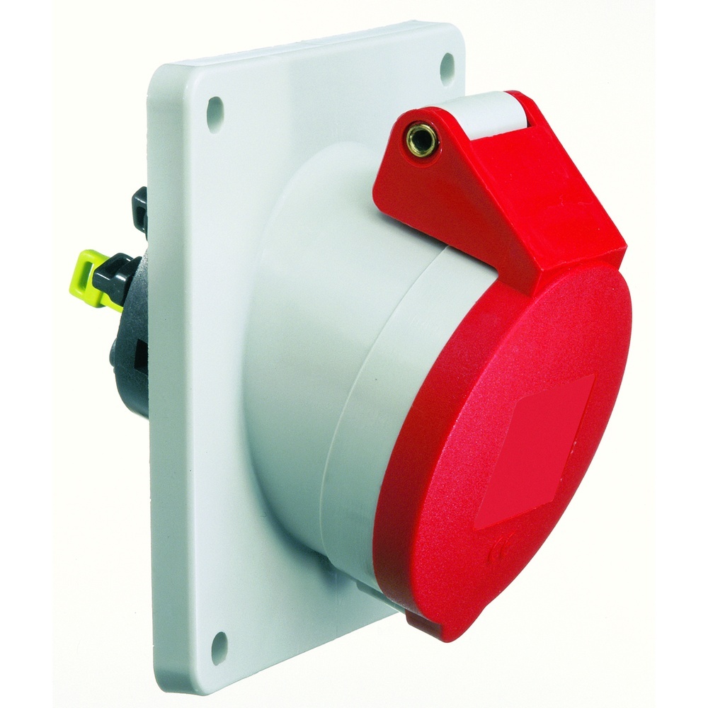 Bals Anbausteckdose 12801 Anbausteckdose Quick-Connect geneigt 32A 5p (3P+N+PE) 400V (200/346 bis 240/415V) 6h IP44 50 und 60Hz, Kennfarbe rot RAL 3000, Flansch- und Befestigungsmaß Flansch 100x92 mm (HxB), Befestigung 85x77 mm (HxB), Kontaktträger/Kontakte Kontaktträger aus Polyamid, die Kontakte sind aus Messing, Maximaler Leiterquerschnitt 10,0 qmm, Gehäusematerial Polyamid, Sonstige technische Eigenschaften Die Neigung beträgt 20 Grad. Typ 12801 EAN Nr. 4024941128018 Warengruppe Bals Anbausteckdosen