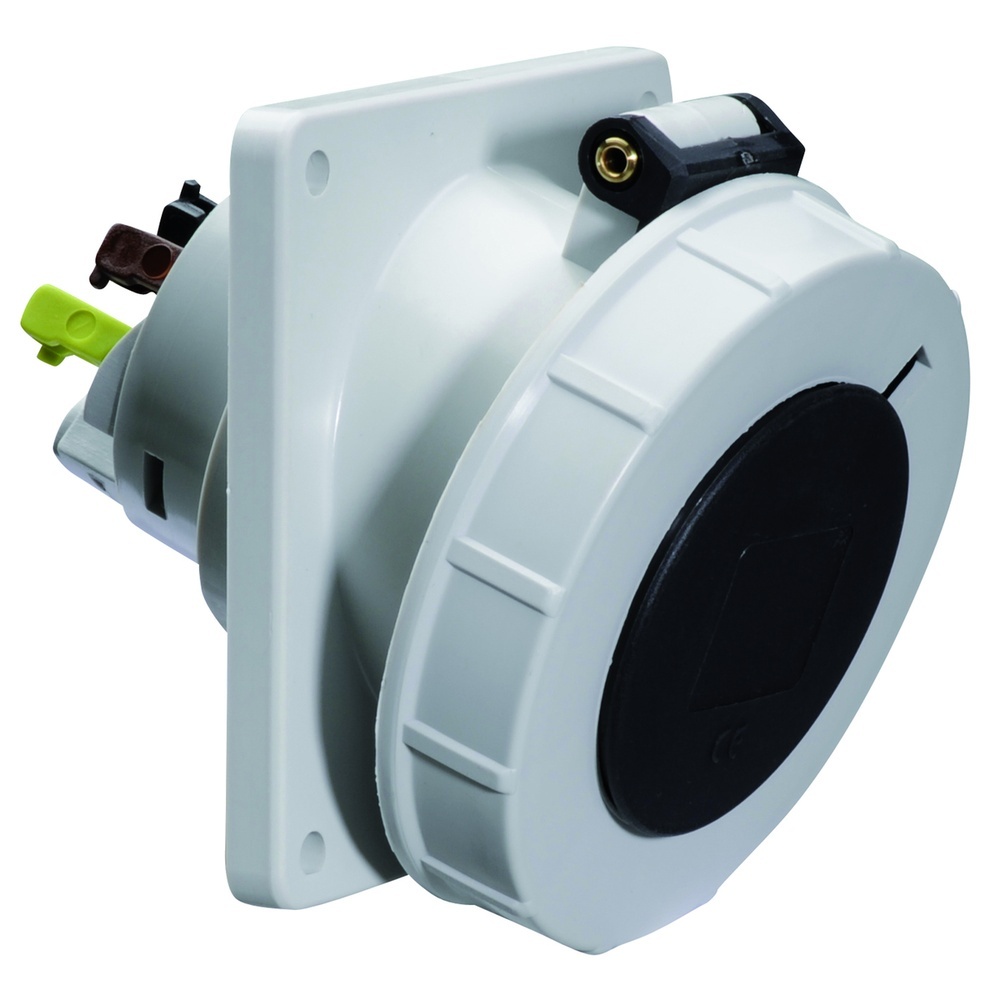 Bals Anbausteckdose 12834 Anbausteckdose Quick-Connect geneigt 16A 4p (3P+PE) 500V (480 bis 500V) 7h IP67 50 und 60Hz, Kennfarbe schwarz RAL 9005, Flansch- und Befestigungsmaß Flansch 100x92 mm (HxB), Befestigung 85x77 mm (HxB), Kontaktträger/Kontakte Kontaktträger aus Polyamid, die Kontakte sind aus Messing, Maximaler Leiterquerschnitt 4,0 qmm, Gehäusematerial Polyamid, Sonstige technische Eigenschaften Die Neigung beträgt 20 Grad. Typ 12834 EAN Nr. 4024941128346 Warengruppe Bals Anbausteckdosen
