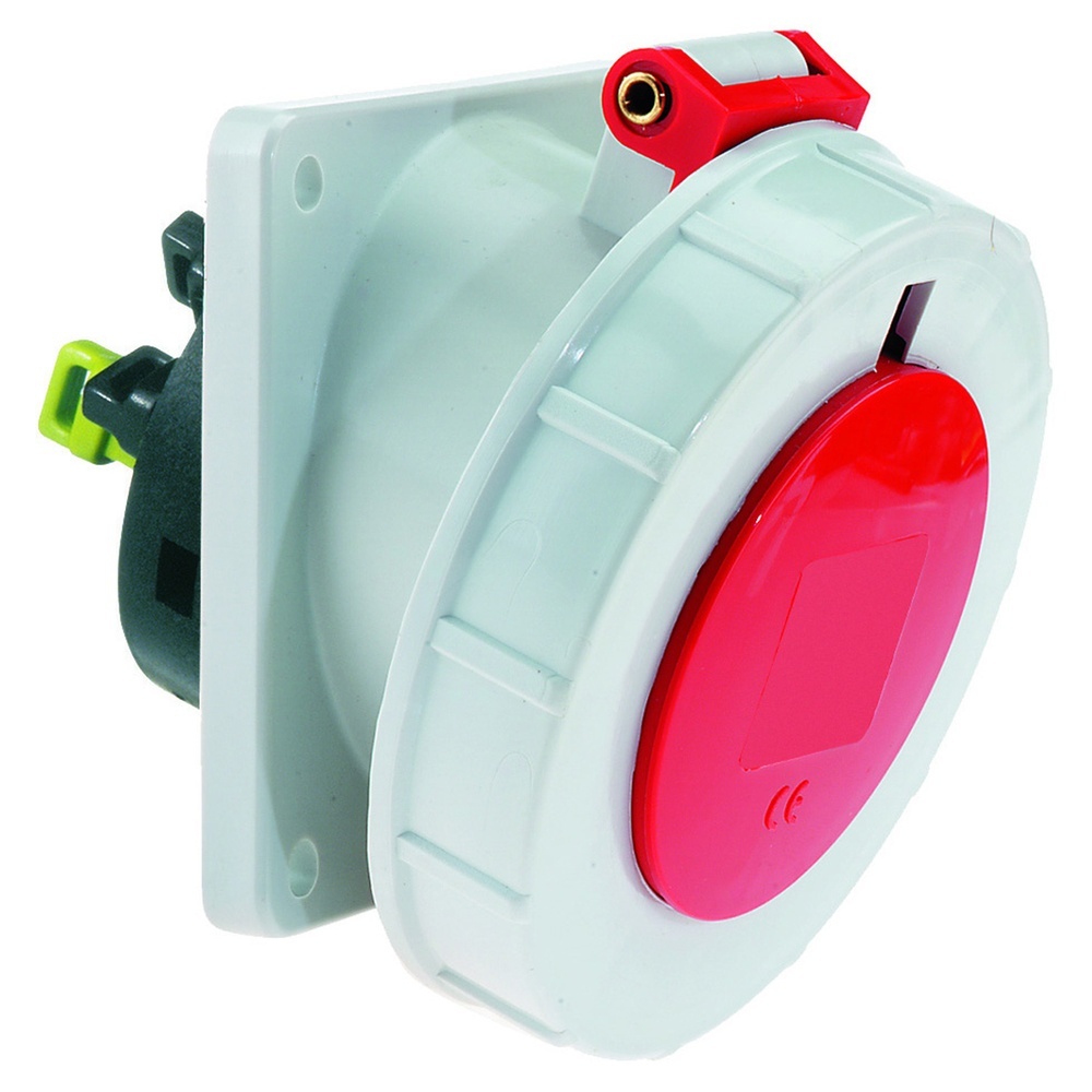 Bals Anbausteckdose 12920 Anbausteckdose Quick-Connect TE geneigt 16A 4p (3P+PE) 400V (380 bis 415V) 6h IP67 50 und 60Hz, Kennfarbe rot RAL 3000, Flansch- und Befestigungsmaß Flansch 100x92 mm (HxB), Befestigung 85x77 mm (HxB), Kontaktträger/Kontakte Kontaktträger aus hochwärmebeständigem Material, die Kontakte sind Messing vernickelt, Maximaler Leiterquerschnitt 4,0 qmm, Gehäusematerial Polyamid, Sonstige technische Eigenschaften Die Neigung beträgt 20 Grad. Typ 12920 EAN Nr. 4024941129206 Warengruppe Bals Anbausteckdosen