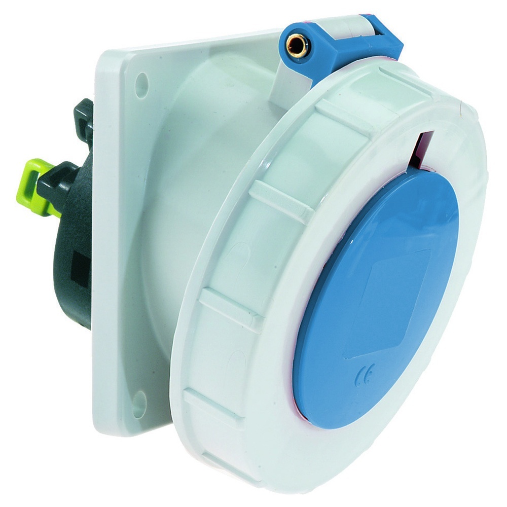 Bals Anbausteckdose 12924 Anbausteckdose Quick-Connect TE geneigt 32A 3p (2P+PE) 230V (200 bis 250V) 6h IP67 50 und 60Hz, Kennfarbe blau RAL 5015, Flansch- und Befestigungsmaß Flansch 100x92 mm (HxB), Befestigung 85x77 mm (HxB), Kontaktträger/Kontakte Kontaktträger aus hochwärmebeständigem Material, die Kontakte sind Messing vernickelt, Maximaler Leiterquerschnitt 10,0 qmm, Gehäusematerial Polyamid, Sonstige technische Eigenschaften Die Neigung beträgt 20 Grad. Typ 12924 EAN Nr. 4024941129244 Warengruppe Bals Anbausteckdosen