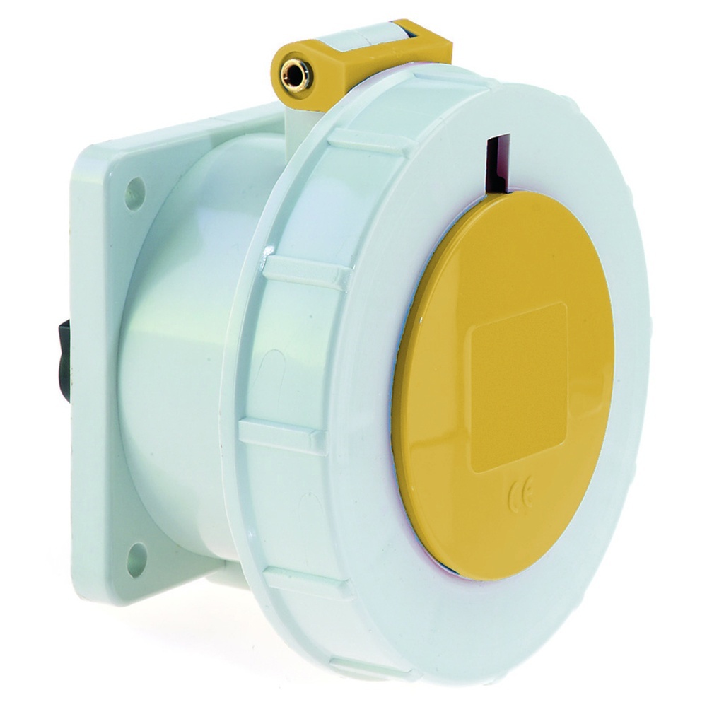 Bals Anbausteckdose 13026 Anbausteckdose gerade 32A 4p (3P+PE) 110V (100 bis 130V) 4h IP67 50 und 60Hz, Kennfarbe gelb RAL 1012, Flansch- und Befestigungsmaß Flansch 75x75 mm, Befestigung 60x60 mm, Kontaktträger/Kontakte Kontaktträger aus Polyamid, die Kontakte sind aus Messing, Maximaler Leiterquerschnitt 10,0 qmm, Gehäusematerial Polyamid Typ 13026 EAN Nr. 4024941130264 Warengruppe Bals Anbausteckdosen