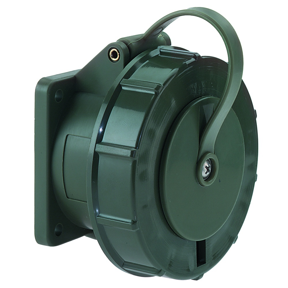 Bals Anbausteckdose 13066 Anbausteckdose Quick-Connect TN gerade 32A 5p (3P+N+PE) 400V (200/346 bis 240/415V) 6h IP67 50 und 60Hz, Kennfarbe bronzegrün RAL 6031-F9, Flansch- und Befestigungsmaß Flansch 75x75 mm, Befestigung 60x60 mm, Kontaktträger/Kontakte Kontaktträger aus hochwärmebeständigem Material, die Kontakte sind Messing vernickelt, Maximaler Leiterquerschnitt 10,0 qmm, Gehäusematerial Polyamid, Sonstige technische Eigenschaften Der Bajonettdeckel ist mit einem Befestigungsband an dem Gehäuse befestigt. Typ 13066 EAN Nr. 4024941130660 Warengruppe Bals Anbausteckdosen