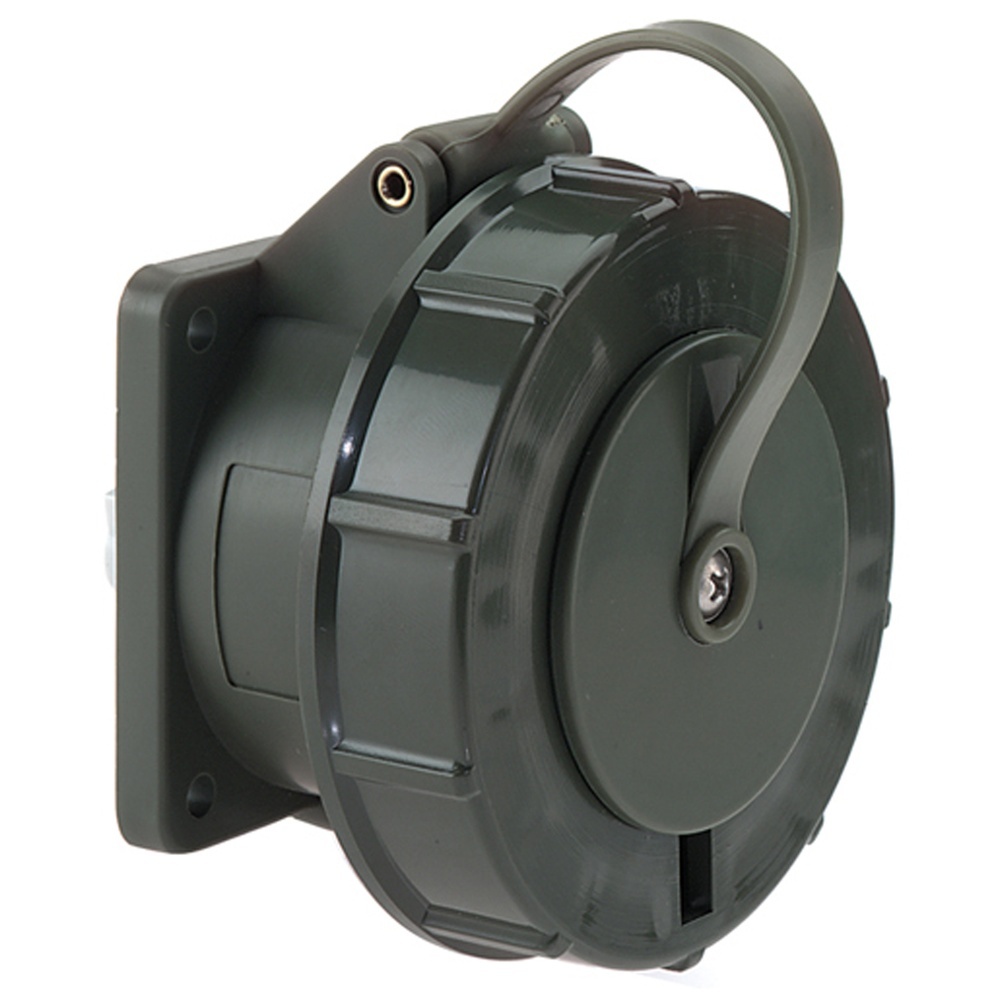 Bals Anbausteckdose 13184 Anbausteckdose Quick-Connect TN gerade 32A 5p (3P+N+PE) 440V ( 250/440 bis 265/460V Hauptsächlich für Schiffsinstallationen 11h IP67 60Hz, Kennfarbe bronzegrün RAL 6031-F9, Flansch- und Befestigungsmaß Flansch 75x75 mm, Befestigung 60x60 mm, Kontaktträger/Kontakte Kontaktträger aus hochwärmebeständigem Material, die Kontakte sind Messing vernickelt, Maximaler Leiterquerschnitt 10,0 qmm, Gehäusematerial Polyamid, Sonstige technische Eigenschaften Der Bajonettdeckel ist mit einem Befestigungsband an dem Gehäuse befestigt. Typ 13184 EAN Nr. 4024941131841 Warengruppe Bals Anbausteckdosen