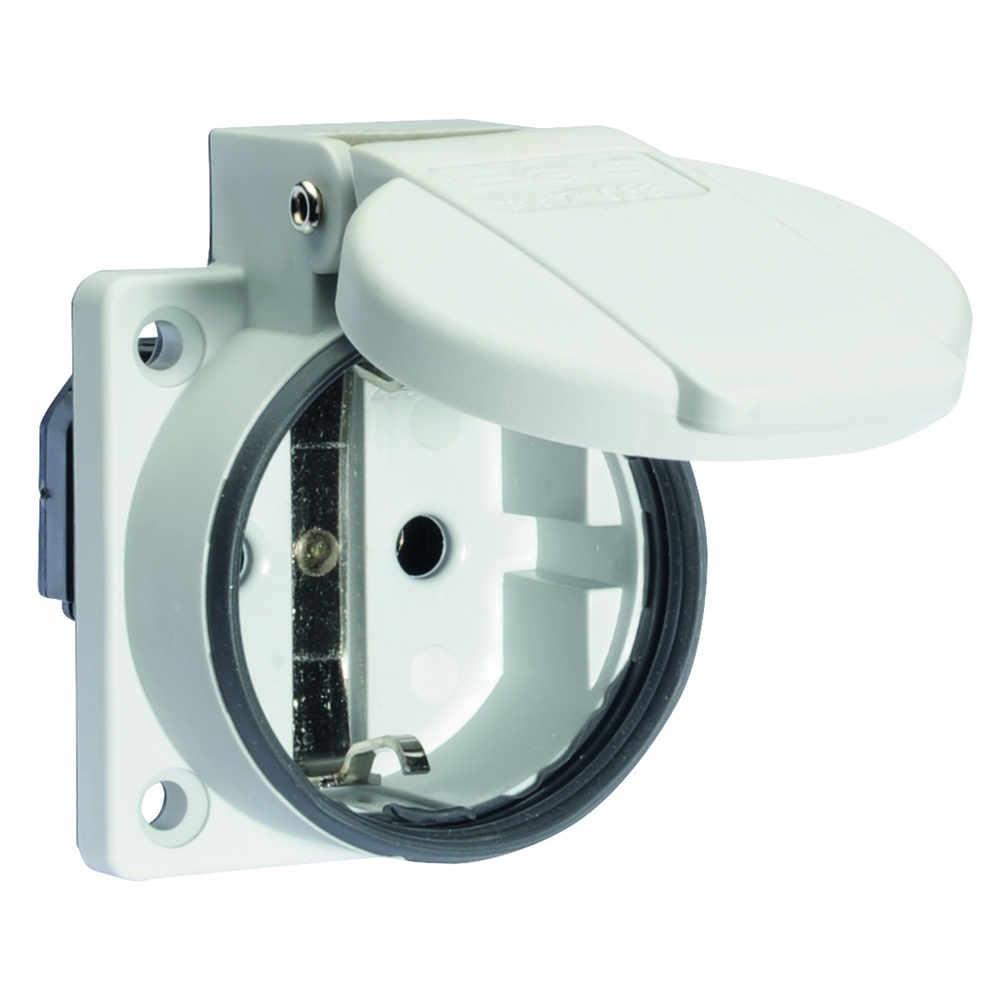Bals Anbausteckdose 71083 Schutzkontakt-Anbausteckdose 16A 3p (2P+PE) 250V (250V) IP54 Wechselstrom (AC), Kennfarbe grau RAL 7035, Flansch- und Befestigungsmaß Flansch 50x50 mm, Befestigung 38x38 mm, Kontaktträger/Kontakte Kontaktträger aus Polyamid, die Kontakte sind Messing vernickelt, Maximaler Leiterquerschnitt 2,5 qmm, Gehäusematerial Polyamid, Sonstige technische Eigenschaften Der Anschluss ist rückwärtig. Zur Verwendung in ortsveränderlichen Verteilersystemen. Typ 71083 EAN Nr. 4024941206945 Warengruppe Bals Anbausteckdosen