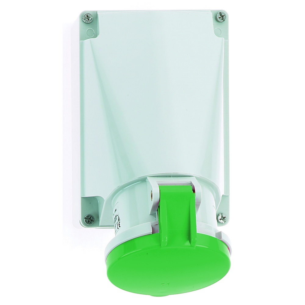 Bals Wandsteckdose 11221 Wandsteckdose 63A 4p (3P+PE) 50V ( 50V) 10h IP44 100 bis einschließlich 300Hz, Kennfarbe grün RAL 6002, Gehäusegröße 170x118 mm (HxB), Kontaktträger/Kontakte Kontaktträger aus Polyamid, die Kontakte sind Messing vernickelt, Maximaler Leiterquerschnitt 25,0 qmm, Gehäusematerial Polycarbonat, Kabeleinführung 1xM40 oben, 2xM32 unten, Sonstige technische Eigenschaften Die Leitungseinführung ist einmal oben offen und zweimal unten verschlossen. Das Gehäuseunterteil ist um 180 Grad drehbar. Typ 11221 EAN Nr. 4024941112215 Warengruppe Bals Wandsteckdose