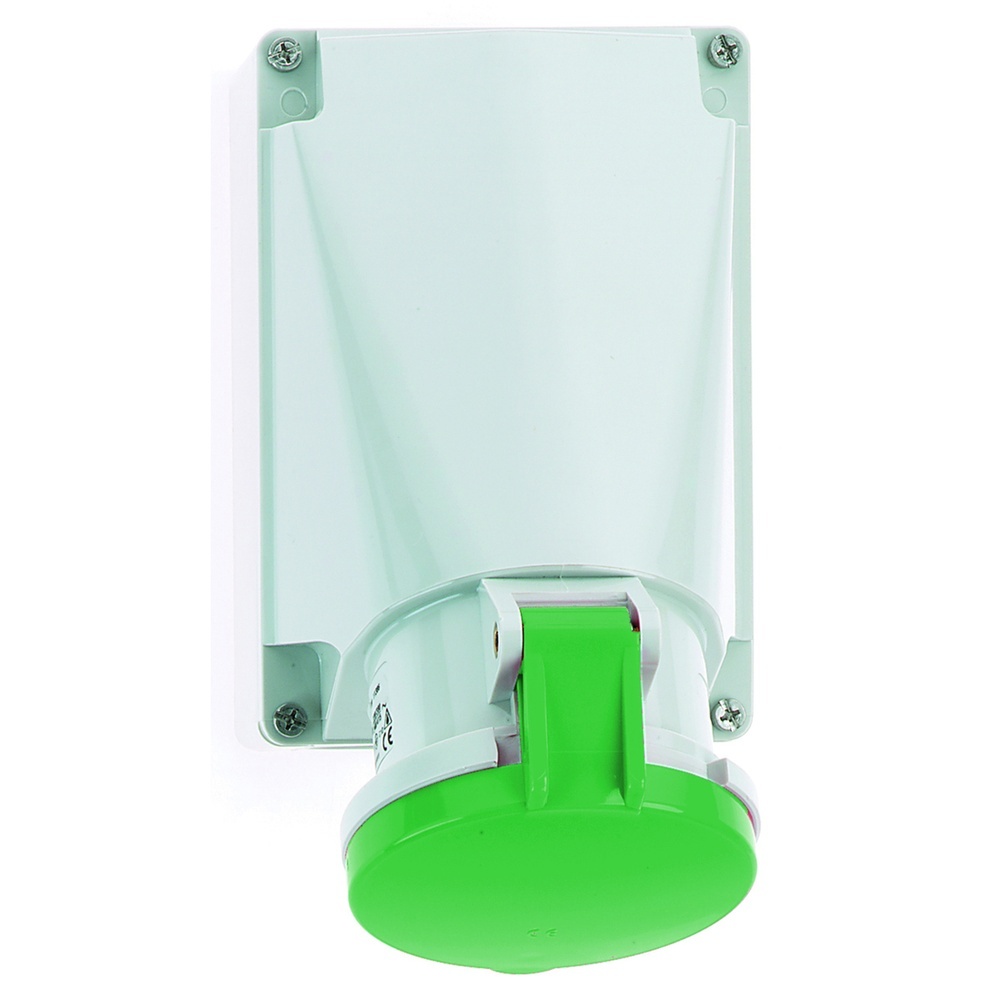 Bals Wandsteckdose 11429 Wandsteckdose 63A 5p (3P+N+PE) 50V ( 50V) 10h IP44 100 bis einschließlich 300Hz, Kennfarbe grün RAL 6002, Gehäusegröße 170x118 mm (HxB), Kontaktträger/Kontakte Kontaktträger aus Polyamid, die Kontakte sind Messing vernickelt, Maximaler Leiterquerschnitt 25,0 qmm, Gehäusematerial Polycarbonat, Kabeleinführung 1xM40 oben, 2xM32 unten, Sonstige technische Eigenschaften Die Leitungseinführung ist einmal oben offen und zweimal unten verschlossen. Das Gehäuseunterteil ist um 180 Grad drehbar. Typ 11429 EAN Nr. 4024941114295 Warengruppe Bals Wandsteckdose
