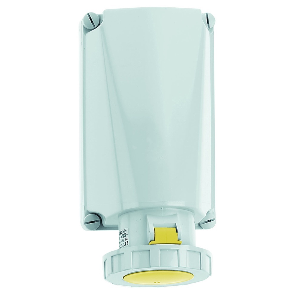 Bals Wandsteckdose 11439 Wandsteckdose 125A 4p (3P+PE) 110V (100 bis 130V) 4h IP67 50 und 60Hz, Kennfarbe gelb RAL 1012, Gehäusegröße 260x160 mm (HxB), Kontaktträger/Kontakte Kontaktträger aus hochwärmebeständigem Material, die Kontakte und Rahmenklemmen sind Messing vernickelt, Maximaler Leiterquerschnitt 70,0 qmm, Gehäusematerial Polycarbonat, Kabeleinführung 1xM50 von oben, Sonstige technische Eigenschaften Die Leitungseinführung ist einmal oben offen. Typ 11439 EAN Nr. 4024941114394 Warengruppe Bals Wandsteckdose