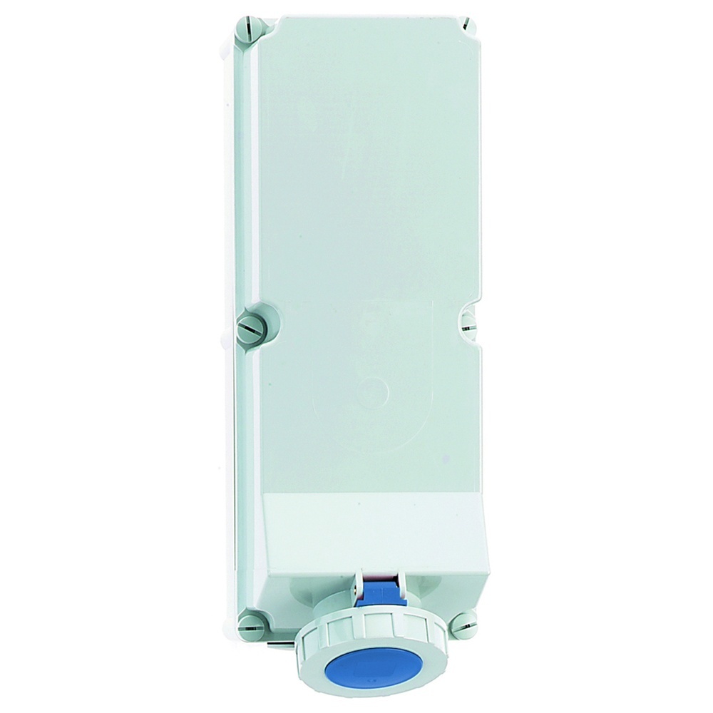 Bals Wandsteckdose 11476 Wandsteckdose 125A 3p (2P+PE) 230V (200 bis 250V) 6h IP67 50 und 60Hz, Kennfarbe blau RAL 5015, Gehäusegröße 460x180 mm (HxB), Kontaktträger/Kontakte Kontaktträger aus hochwärmebeständigem Material, die Kontakte und Rahmenklemmen sind Messing vernickelt, Maximaler Leiterquerschnitt 70,0 qmm, Gehäusematerial Polycarbonat, Kabeleinführung 1xM40 oben, 1xM50/M40 unten, Sonstige technische Eigenschaften Die Leitungseinführung ist einmal oben und zweimal unten offen. Typ 11476 EAN Nr. 4024941114769 Warengruppe Bals Wandsteckdose