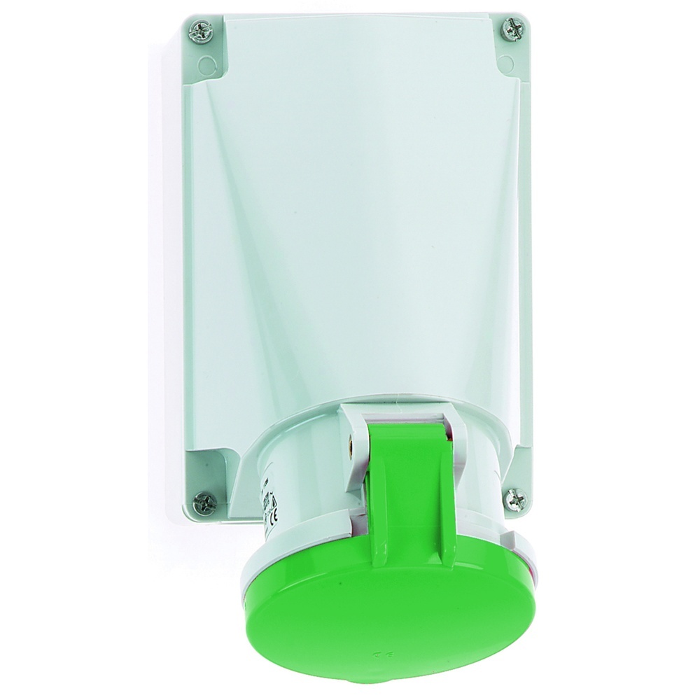 Bals Wandsteckdose 11640 Wandsteckdose 63A 3p (2P+PE) 50V ( 50V) 2h IP44 über 300 bis einschließlich 500Hz, Kennfarbe grün RAL 6002, Gehäusegröße 170x118 mm (HxB), Kontaktträger/Kontakte Kontaktträger aus Polyamid, die Kontakte sind Messing vernickelt, Maximaler Leiterquerschnitt 25,0 qmm, Gehäusematerial Polycarbonat, Kabeleinführung 1xM40 oben, 2xM32 unten, Sonstige technische Eigenschaften Die Leitungseinführung ist einmal oben offen und zweimal unten verschlossen. Das Gehäuseunterteil ist um 180 Grad drehbar. Typ 11640 EAN Nr. 4024941116404 Warengruppe Bals Wandsteckdose