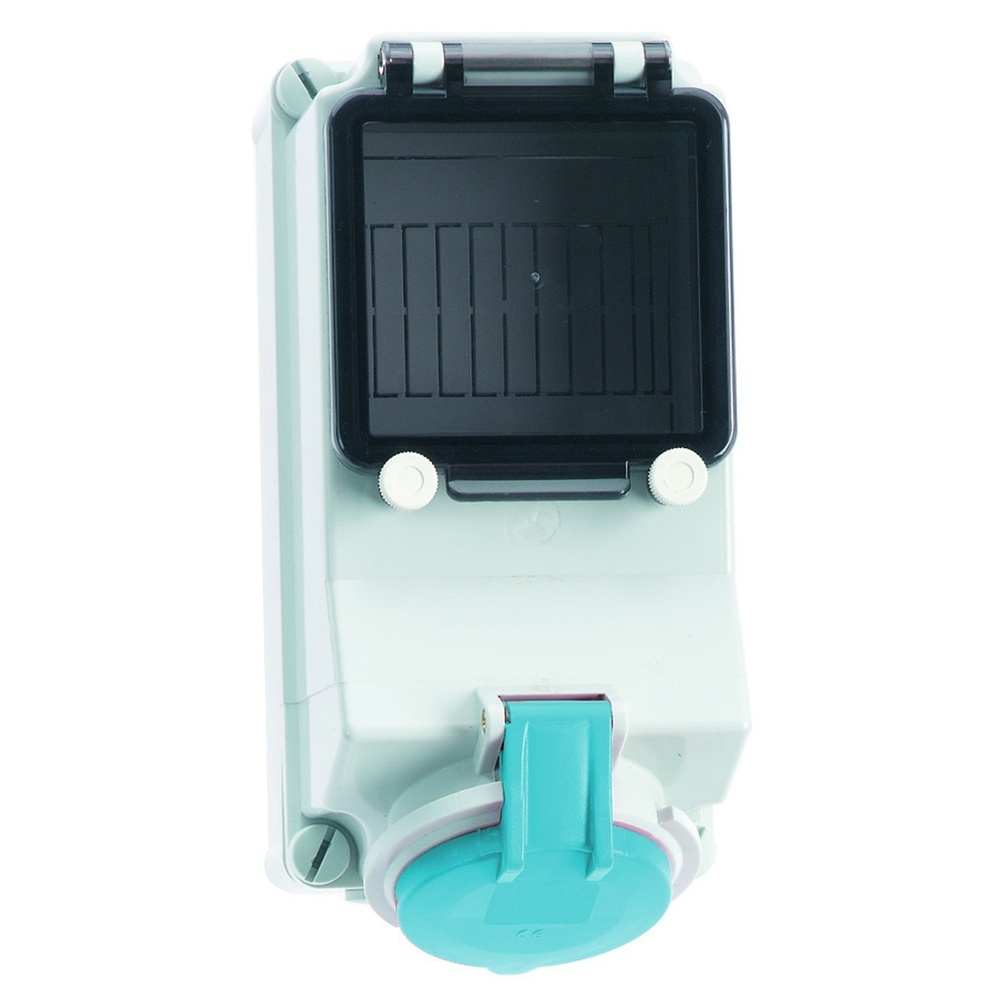 Bals Wandsteckdose 15030 Wandsteckdose Quick-Connect abgesichert 32A 3p (2P+PE) 230V (200 bis 250V) 6h IP44 50 und 60Hz, Kennfarbe blau RAL 5015, Gehäusegröße 225x118 mm (HxB), Kontaktträger/Kontakte Kontaktträger aus hochwärmebeständigem Material, die Kontakte sind Messing vernickelt, Maximaler Leiterquerschnitt 10,0 qmm, Gehäusematerial Polycarbonat, Kabeleinführung 2xM25 oben, 2xM25 unten, Sonstige technische Eigenschaften Die Leitungseinführung ist einmal oben offen, einmal oben verschlossen, zweimal unten verschlossen. Eine Tragschiene für 5 Teilungseinheiten waagerecht ist unter der Betätigungsklappe vorhanden. Die Sicherungsabdeckung ist mit Vorprägungen. Im Gehäuseunterteil ist eine Tragschiene vorhanden. Typ 15030 EAN Nr. 4024941150309 Warengruppe Bals Wandsteckdose