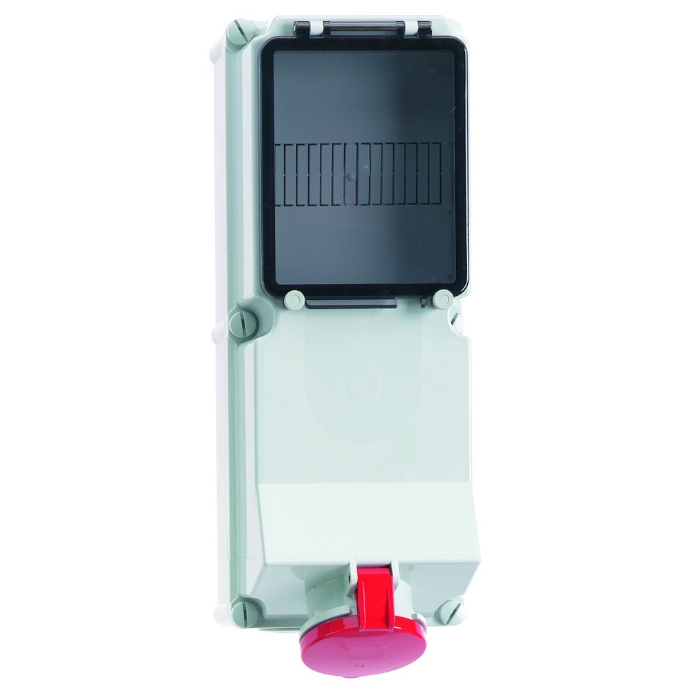Bals Wandsteckdose 15155 Wandsteckdose TE abgesichert 63A 4p 400V 6h, IP44 Wandsteckdose TE abgesichert 63A 4p (3P+PE) 400V (380-415V) 6h IP44 Frequenz: 50/60Hz Technische Kennfarbe: rot RAL 3000 Gehäusegröße: 460x180 mm (HxB) Kontaktträger/Kontakte: der Kontaktträger ist aus hochwärmebeständigem Material, die Kontakte sind Messing vernickelt Maximaler Leiterquerschnitt: 25,0 qmm Gehäusematerial: Polycarbonat Anschlusstechnik: Schraubklemmen als Rahmenklemmen mit Kontex-Kontakt Absicherung: ohne Kabeleinführung: 1xM40 oben, 1xM40/M32 unten Gerätefarbe: Betätigungsklappe rauchtopas, Klappdeckel rot RAL 3000, Gehäuseschrauben grau RAL 7035, Gehäuseunterteil grau RAL 7035, Gehäuseoberteil grau RAL 7035 Gerätehöhe: 500 mm, Gerätebreite: 180 mm, Gerätetiefe: 191 mm Sonstige technische Eigenschaften: Die Leitungseinführung ist einmal oben und zweimal unten offen, Eine Tragschiene für 8 Teilungseinheiten waagerecht ist unter der Betätigungsklappe vorhanden, Die Sicherungsabdeckung ist mit Vorprägungen Hersteller Bals Nr. 15155 EAN Nr. 4024941151559 Warengruppe Bals Wandsteckdose
