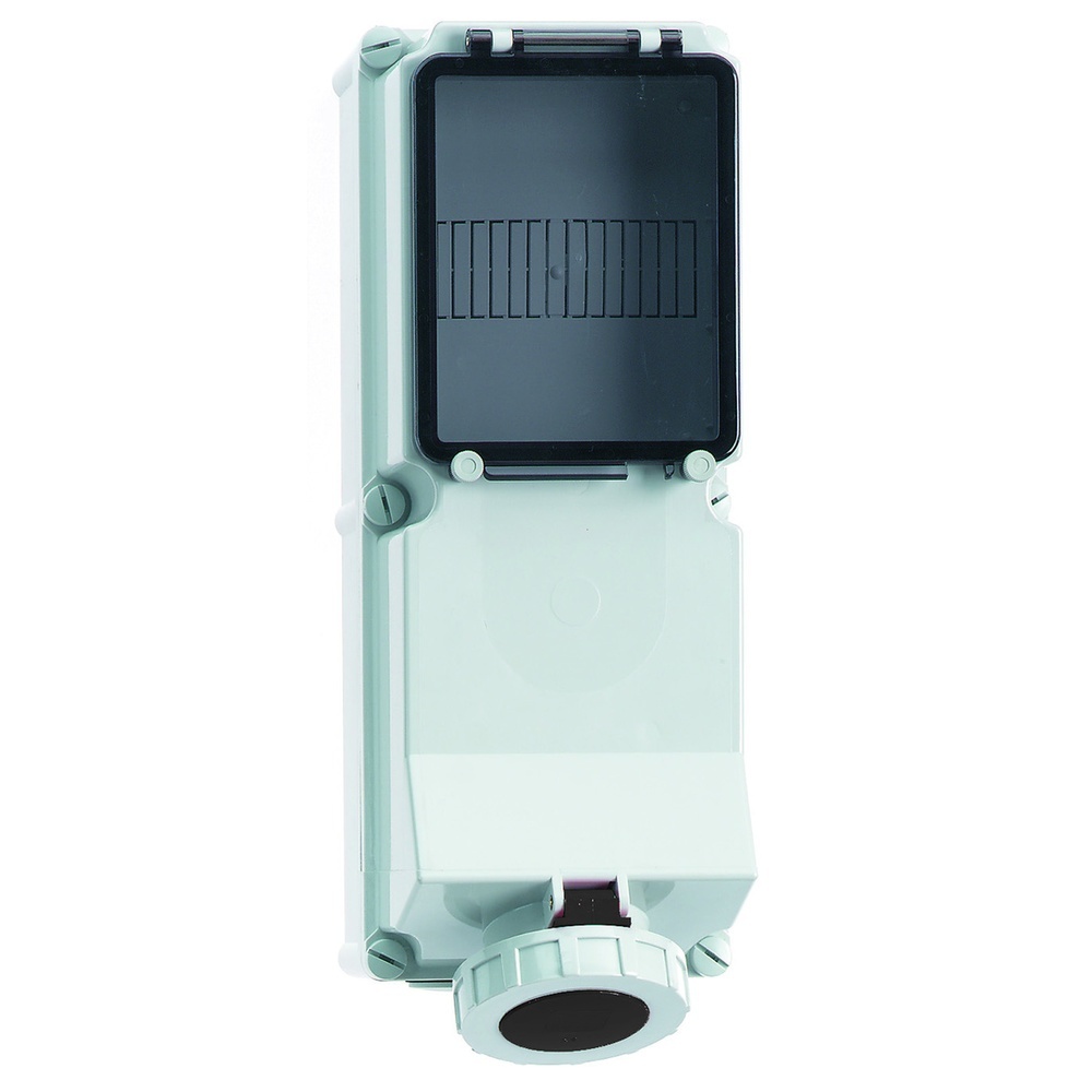 Bals Wandsteckdose 15157 Wandsteckdose TE abgesichert 63A 4p 500V 7h, IP67 Wandsteckdose TE abgesichert 63A 4p (3P+PE) 500V (480-500V) 7h IP67 Frequenz: 50/60Hz Technische Kennfarbe: schwarz RAL 9005 Gehäusegröße: 460x180 mm (HxB) Kontaktträger/Kontakte: der Kontaktträger ist aus hochwärmebeständigem Material, die Kontakte sind Messing vernickelt Maximaler Leiterquerschnitt: 25,0 qmm Gehäusematerial: Polycarbonat Anschlusstechnik: Schraubklemmen als Rahmenklemmen mit Kontex-Kontakt Absicherung: ohne Kabeleinführung: 1xM40 oben, 1xM40/M32 unten Gerätefarbe: Klappdeckel schwarz RAL 9005, Betätigungsklappe rauchtopas, Bajonettring grau RAL 7035, Gehäuseschrauben grau RAL 7035, Gehäuseunterteil grau RAL 7035, Gehäuseoberteil grau RAL 7035 Gerätehöhe: 503 mm, Gerätebreite: 180 mm, Gerätetiefe: 192 mm Sonstige technische Eigenschaften: Die Leitungseinführung ist einmal oben und zweimal unten offen, Eine Tragschiene für 8 Teilungseinheiten waagerecht ist unter der Betätigungsklappe vorhanden, Die Sicherungsabdeckung ist mit Vorprägungen Hersteller Bals Nr. 15157 EAN Nr. 4024941151573 Warengruppe Bals Wandsteckdose