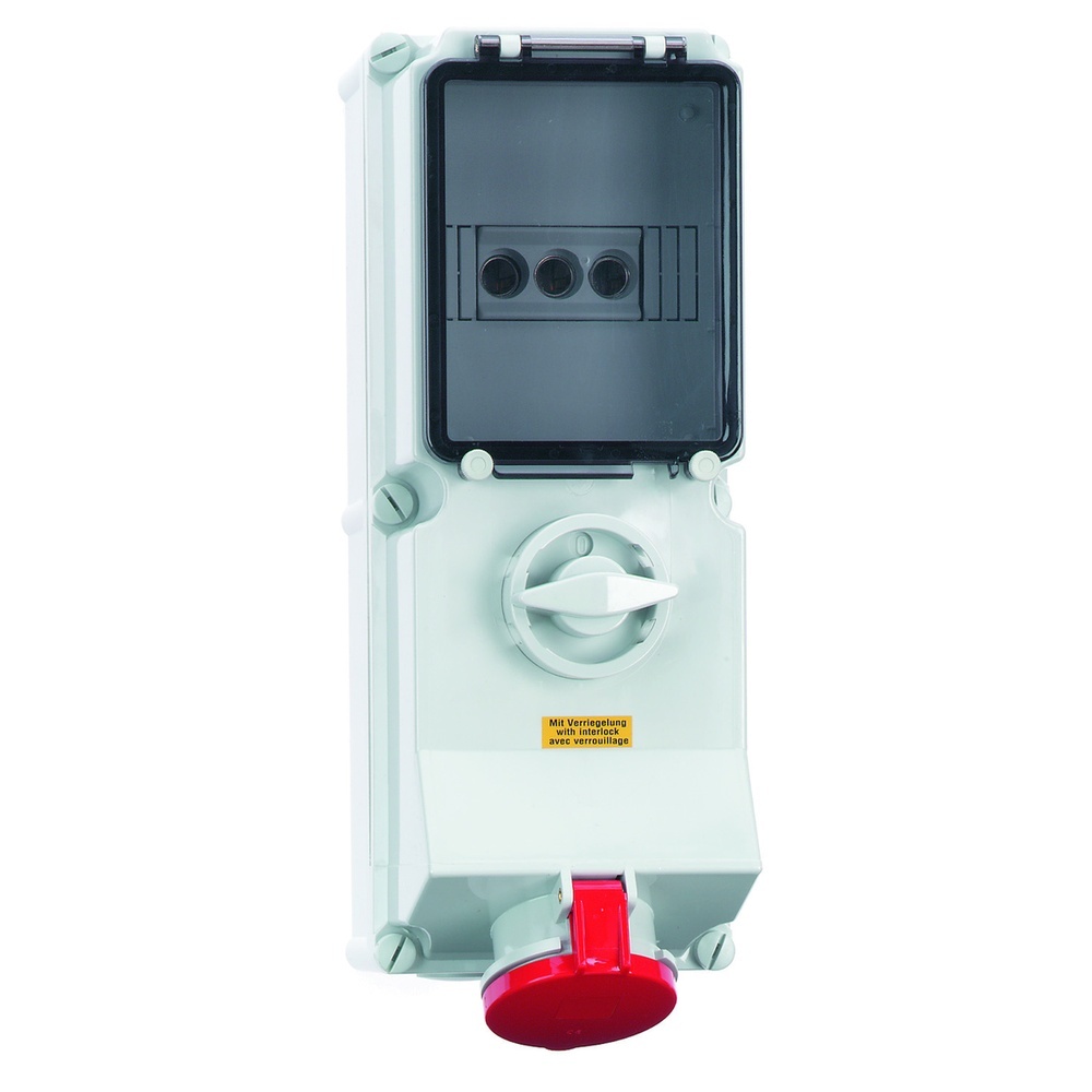 Bals Wandsteckdose 17526 Wandsteckdose abschaltbar, verriegelt, abgesichert 63A 4p (3P+PE) 400V (380 bis 415V) 6h IP44 50 und 60Hz, Kennfarbe rot RAL 3000, Gehäusegröße 460x180 mm (HxB), Kontaktträger/Kontakte Kontaktträger aus hochwärmebeständigem Material, die Kontakte und Rahmenklemmen sind aus Messing, Maximaler Leiterquerschnitt 25,0 qmm, Gehäusematerial Polycarbonat, Kabeleinführung 1xM40 oben, 1xM40/M32 unten, Sonstige technische Eigenschaften Die Leitungseinführung ist einmal oben und zweimal unten offen. In 0-Stellung abschließbar für bis zu 4 Bügelschlösser mit einem Bügeldurchmesser bis 7mm. Ein Sicherungssockel D 02 3pol ist unter der Betätigungsklappe vorhanden. Typ 17526 EAN Nr. 4024941175265 Warengruppe Bals Wandsteckdose