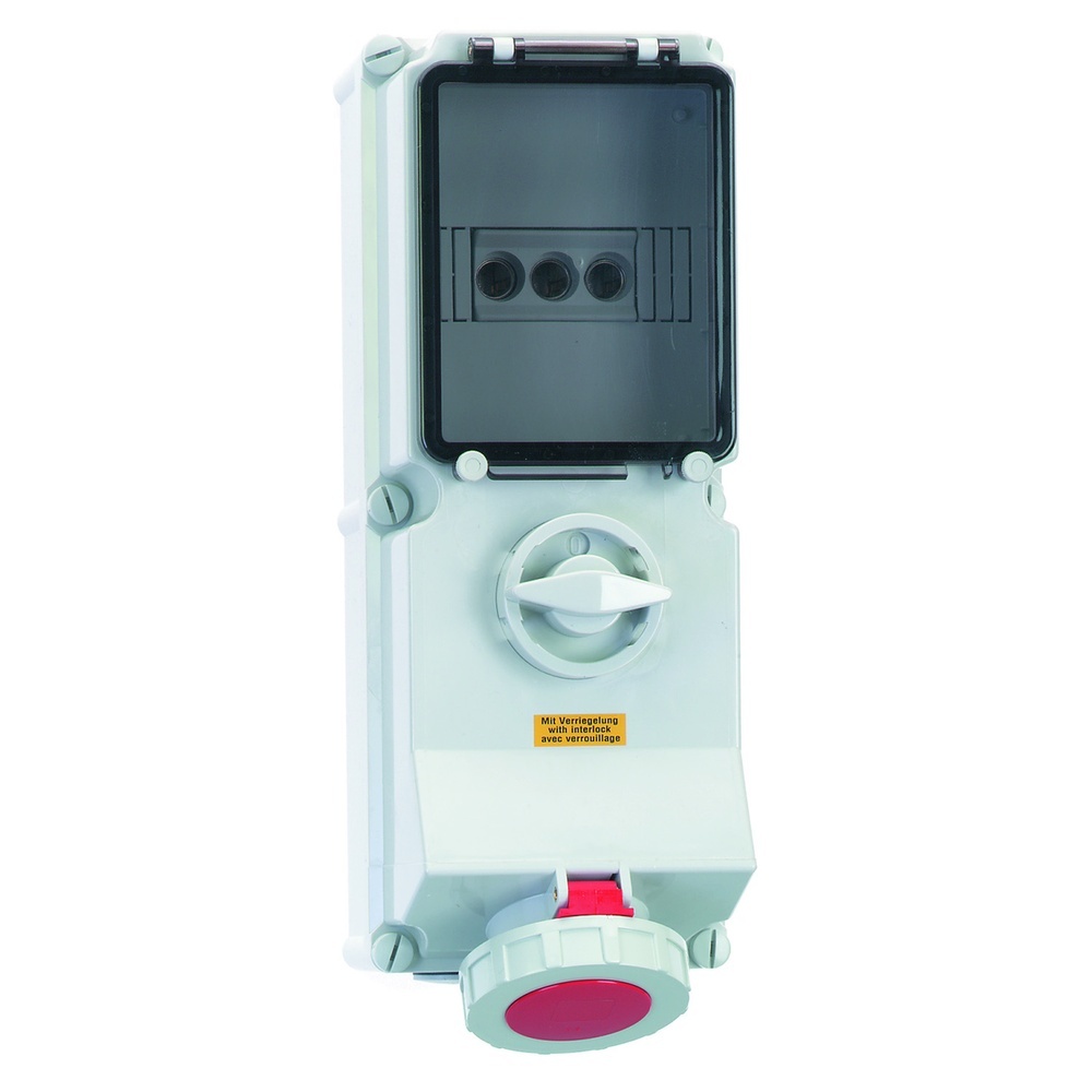 Bals Wandsteckdose 17544 Wandsteckdose abschaltbar, verriegelt, abgesichert 63A 5p (3P+N+PE) 400V (200/346 bis 240/415V) 6h IP67 50 und 60Hz, Kennfarbe rot RAL 3000, Gehäusegröße 460x180 mm (HxB), Kontaktträger/Kontakte Kontaktträger aus hochwärmebeständigem Material, die Kontakte und Rahmenklemmen sind aus Messing, Maximaler Leiterquerschnitt 25,0 qmm, Gehäusematerial Polycarbonat, Kabeleinführung 1xM40 oben, 1xM40/M32 unten, Sonstige technische Eigenschaften Die Leitungseinführung ist einmal oben und zweimal unten offen. In 0-Stellung abschließbar für bis zu 4 Bügelschlösser mit einem Bügeldurchmesser bis 7mm. Ein Sicherungssockel D 02 3pol ist unter der Betätigungsklappe vorhanden. Typ 17544 EAN Nr. 4024941175449 Warengruppe Bals Wandsteckdose