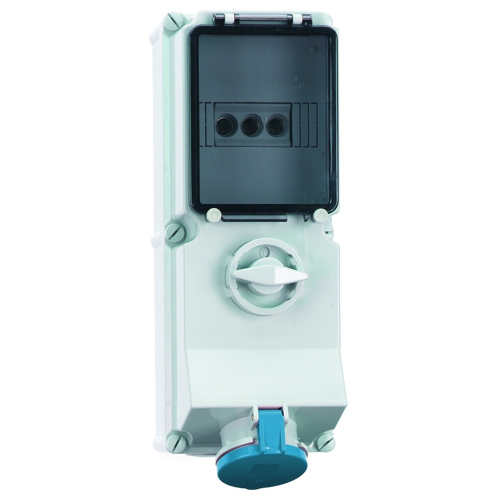 Bals Wandsteckdose 177 Wandsteckdose abschaltbar abgesichert 63A 5p 230V 9h, IP44 Wandsteckdose abschaltbar abgesichert 63A 5p (3P+N+PE) 230V (120/208-144/250V) 9h IP44 Frequenz: 50/60Hz Technische Kennfarbe: blau RAL 5015 Gehäusegröße: 460x180 mm (HxB) Kontaktträger/Kontakte: der Kontaktträger ist aus Polyamid, die Kontakte sind Messing vernickelt Maximaler Leiterquerschnitt: 25,0 qmm Gehäusematerial: Polycarbonat Anschlusstechnik: Schraubklemmen als Rahmenklemmen mit Kontex-Kontakt Absicherung: D0-Sicherung Kabeleinführung: 1xM40 oben, 1xM40/M32 unten Gerätefarbe: Betätigungsklappe rauchtopas, Klappdeckel blau RAL 5015, Gehäuseschrauben grau RAL 7035, Gehäuseunterteil grau RAL 7035, Gehäuseoberteil grau RAL 7035, Schalterknebel grau RAL 7035 Gerätehöhe: 500 mm, Gerätebreite: 180 mm, Gerätetiefe: 191 mm Sonstige technische Eigenschaften: Die Leitungseinführung ist einmal oben und zweimal unten offen, In 0-Stellung abschließbar für bis zu 4 Bügelschlösser mit einem Bügeldurchmesser bis 7mm, Ein Sicherungssockel D 02 3pol ist unter der Betätigungsklappe vorhanden Hersteller Bals Nr. 177 EAN Nr. 4024941001779 Warengruppe Bals Wandsteckdose