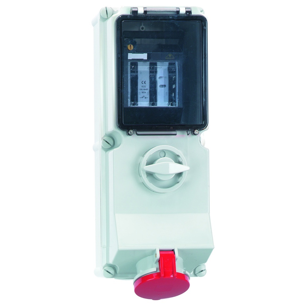 Bals Wandsteckdose 1793 Wandsteckdose abschaltbar abgesichert 63A 4p 400V 6h, IP44 Wandsteckdose abschaltbar abgesichert 63A 4p (3P+PE) 400V (380-415V) 6h IP44 Frequenz: 50/60Hz Technische Kennfarbe: rot RAL 3000 Gehäusegröße: 460x180 mm (HxB) Kontaktträger/Kontakte: der Kontaktträger ist aus hochwärmebeständigem Material, die Kontakte sind Messing vernickelt Maximaler Leiterquerschnitt: 25,0 qmm Gehäusematerial: Polycarbonat Anschlusstechnik: Schraubklemmen als Rahmenklemmen mit Kontex-Kontakt Absicherung: NH Kabeleinführung: 1xM40 oben, 1xM40/M32 unten Gerätefarbe: Betätigungsklappe rauchtopas, Klappdeckel rot RAL 3000, Gehäuseschrauben grau RAL 7035, Gehäuseunterteil grau RAL 7035, Gehäuseoberteil grau RAL 7035, Schalterknebel grau RAL 7035 Gerätehöhe: 500 mm, Gerätebreite: 180 mm, Gerätetiefe: 191 mm Sonstige technische Eigenschaften: Die Leitungseinführung ist einmal oben und zweimal unten offen, In 0-Stellung abschließbar für bis zu 4 Bügelschlösser mit einem Bügeldurchmesser bis 7mm, Mit eingebauten Si-Lasttrennschalter NH00 Hersteller Bals Nr. 1793 EAN Nr. 4024941017930 Warengruppe Bals Wandsteckdose