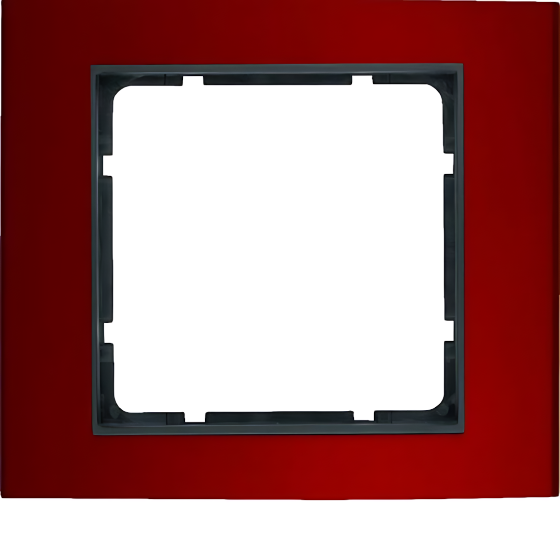 Berker 1fach Rahmen 10113012 Rahmen 1fach B.3 Alu, rot/anthrazit. Abdeckrahmen für senkrechte und waagerechte Montage. Für Verwendung von anthrazitfarbenen Zentralstücken. Unterputz-Installation, Flächen-/Designprogramm, 1-fach. Material Aluminium und Kunststoff, Thermoplast, bruchsicher, halogenfrei. Hersteller Berker Schalterprogramm EAN Nr. 4011334384830 Warengruppe Berker Serie B