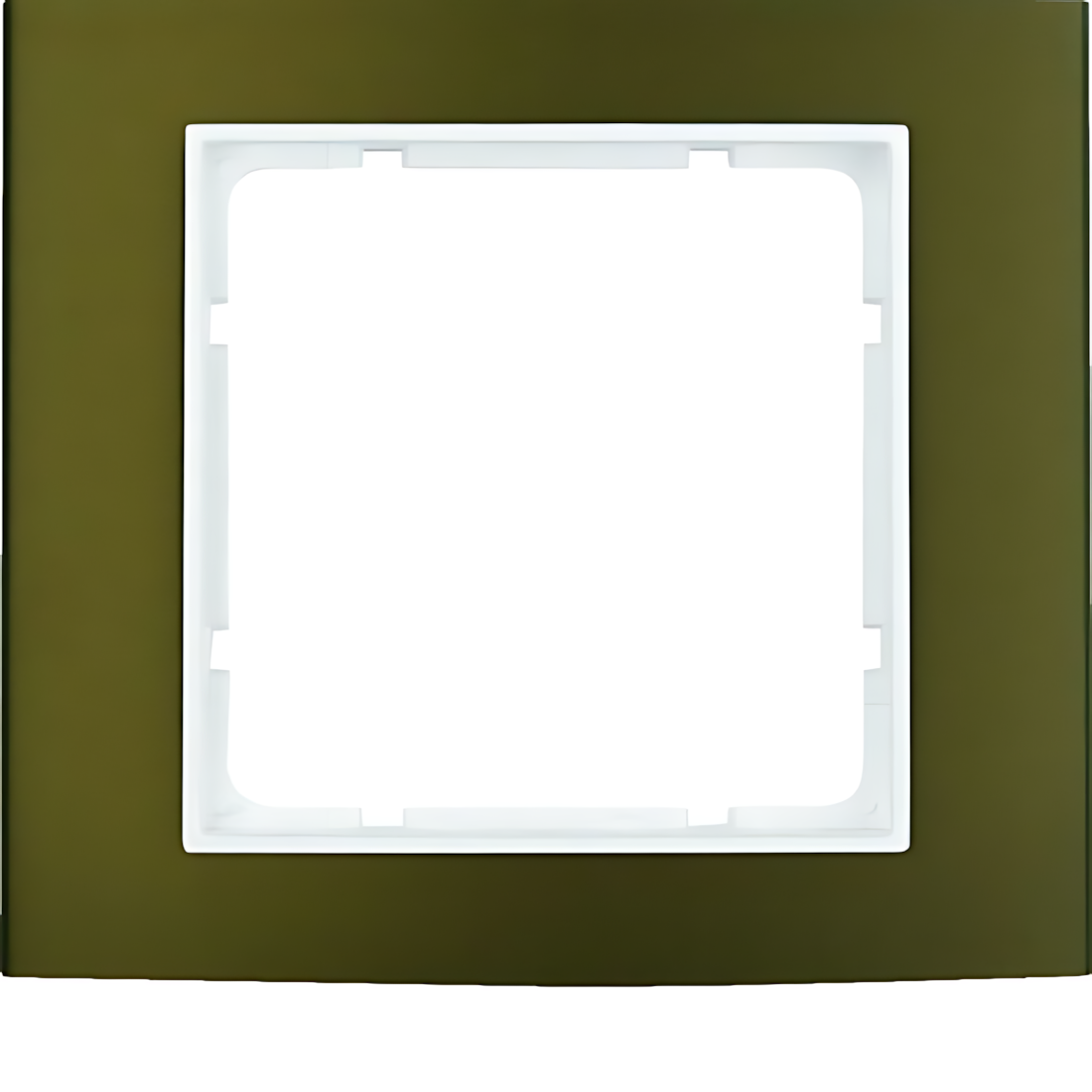 Berker 1fach Rahmen 10113021 Rahmen 1fach B.3 Alu, braun/polarweiß. Abdeckrahmen für senkrechte und waagerechte Montage. Für Verwendung von anthrazitfarbenen Zentralstücken. Unterputz-Installation, Flächen-/Designprogramm, 1-fach. Material Aluminium und Kunststoff, Thermoplast, bruchsicher, halogenfrei. Hersteller Berker Schalterprogramm EAN Nr. 4011334384717 Warengruppe Berker Serie B