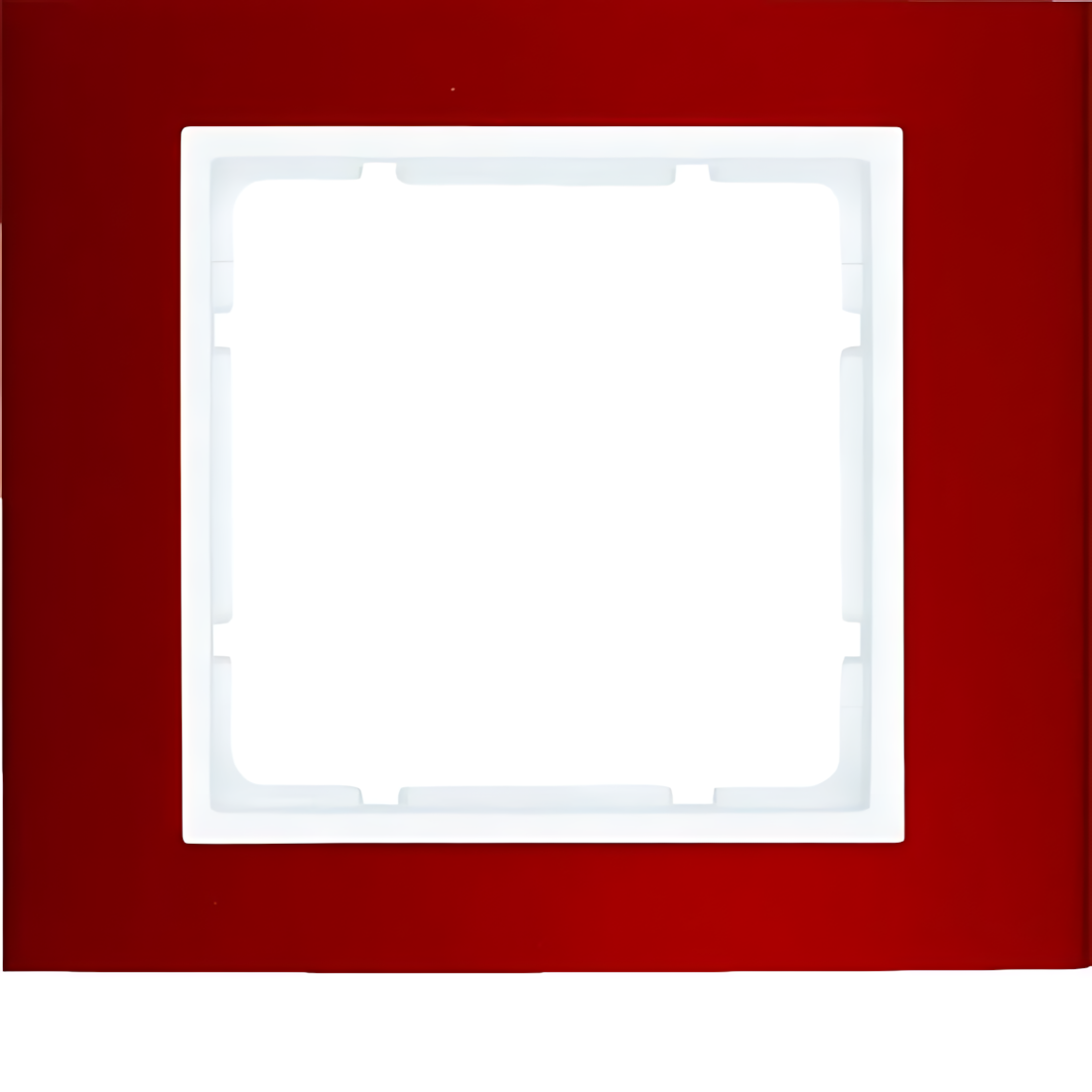 Berker 1fach Rahmen 10113022 Rahmen 1fach B.3 Alu, rot/polarweiß. Abdeckrahmen für senkrechte und waagerechte Montage. Für Verwendung von anthrazitfarbenen Zentralstücken. Unterputz-Installation, Flächen-/Designprogramm, 1-fach. Material Aluminium und Kunststoff, Thermoplast, bruchsicher, halogenfrei. Hersteller Berker Schalterprogramm EAN Nr. 4011334384779 Warengruppe Berker Serie B