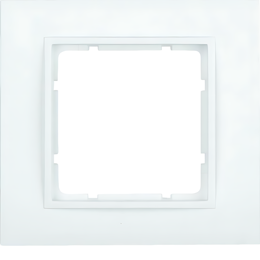 Berker 1fach Rahmen 10116919 Rahmen 1fach B.7 polarweiß, matt. Abdeckrahmen für senkrechte und waagerechte Montage. Für Verwendung von polarweißen Zentralstücken, BxH 95x90mm. Unterputz-Installation, Flächen-/Designprogramm, 1-fach. Material Kunststoff, Thermoplast, bruchsicher, halogenfrei. Hersteller Berker Schalterprogramm EAN Nr. 4011334376613 Warengruppe Berker Serie B