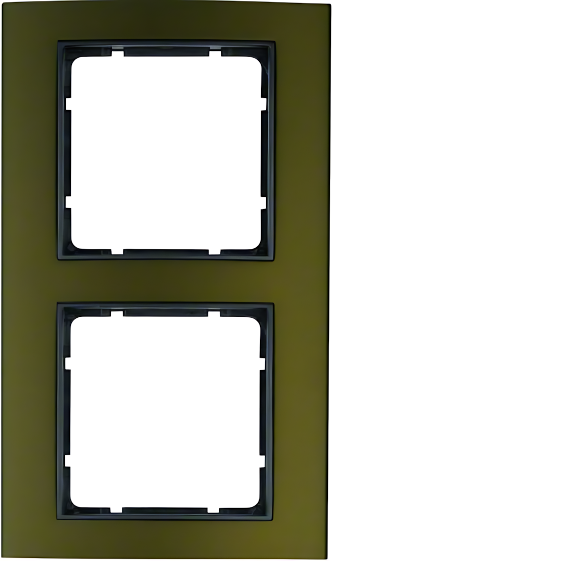 Berker 2fach Rahmen 10123001 Rahmen 2fach B.3 Alu, braun/anthrazit. Abdeckrahmen für senkrechte und waagerechte Montage. Für Verwendung von anthrazitfarbenen Zentralstücken. Unterputz-Installation, Flächen-/Designprogramm, 2-fach. Material Aluminium und Kunststoff, Thermoplast, bruchsicher, halogenfrei. Hersteller Berker Schalterprogramm EAN Nr. 4011334371595 Warengruppe Berker Serie B