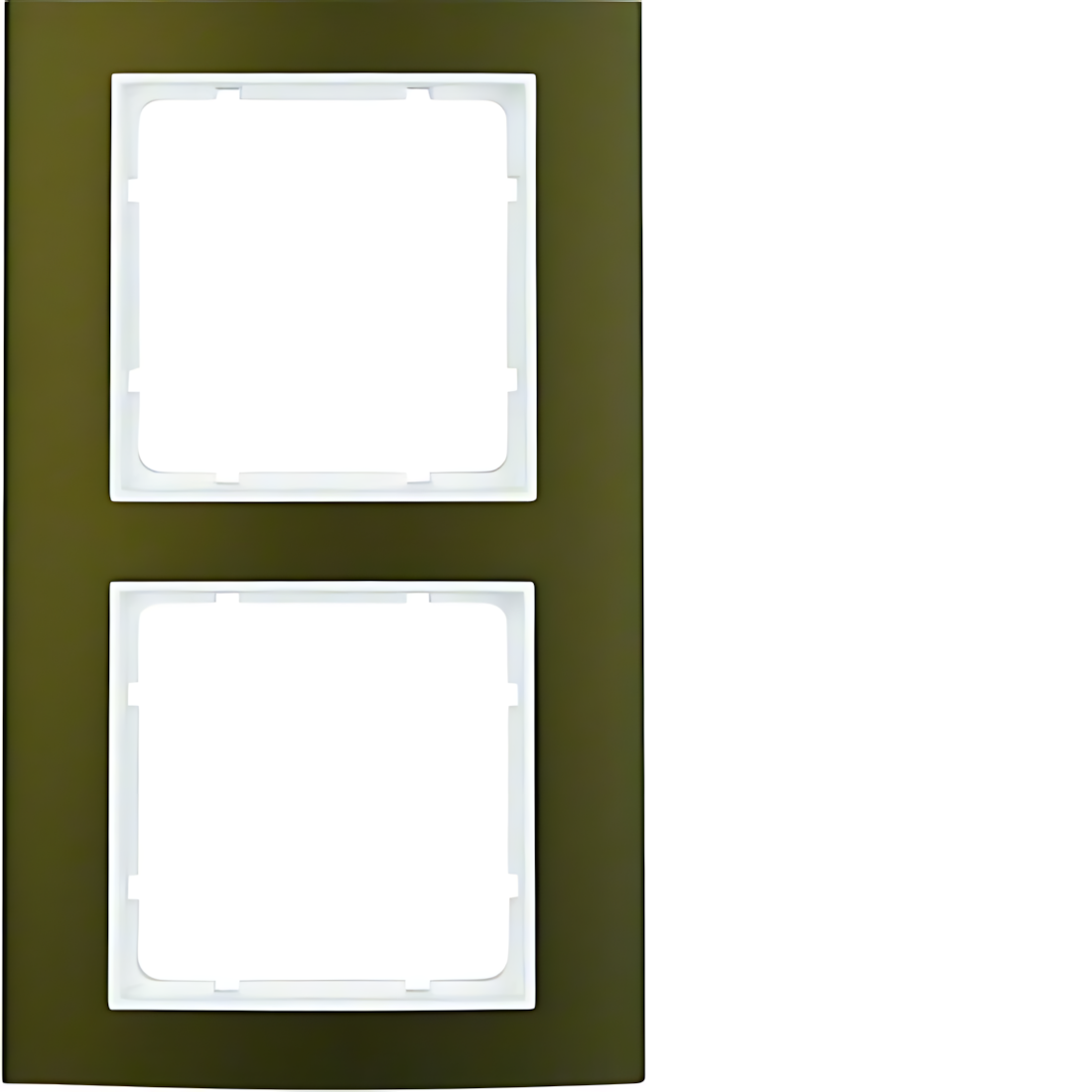 Berker 2fach Rahmen 10123021 Rahmen 2fach B.3 Alu, braun/polarweiß. Abdeckrahmen für senkrechte und waagerechte Montage. Für Verwendung von anthrazitfarbenen Zentralstücken. Unterputz-Installation, Flächen-/Designprogramm, 2-fach. Material Aluminium und Kunststoff, Thermoplast, bruchsicher, halogenfrei. Hersteller Berker Schalterprogramm EAN Nr. 4011334384724 Warengruppe Berker Serie B
