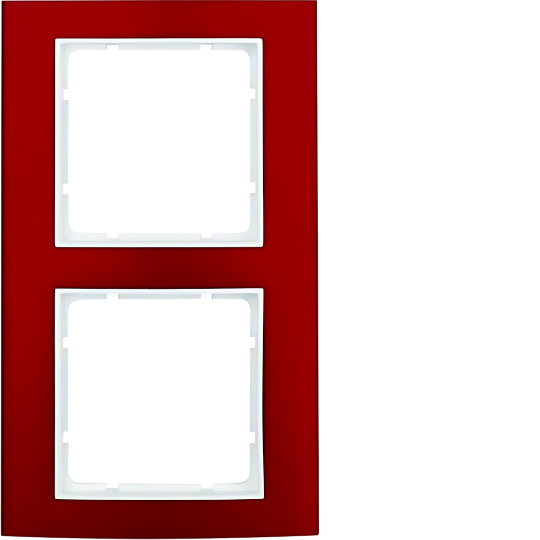 Berker 2fach Rahmen 10123022 Rahmen 2fach B.3 Alu, rot/polarweiß. Abdeckrahmen für senkrechte und waagerechte Montage. Für Verwendung von anthrazitfarbenen Zentralstücken. Unterputz-Installation, Flächen-/Designprogramm, 2-fach. Material Aluminium und Kunststoff, Thermoplast, bruchsicher, halogenfrei. Hersteller Berker Schalterprogramm EAN Nr. 4011334384786 Warengruppe Berker Serie B