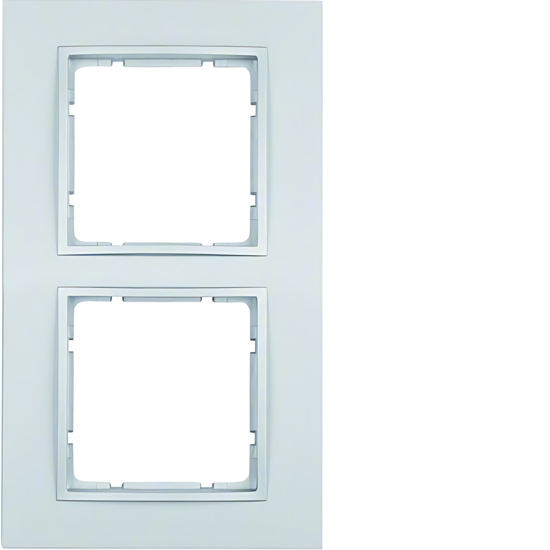Berker 2fach Rahmen 10126424 Rahmen 2fach B.7 alu, matt. Abdeckrahmen für senkrechte und waagerechte Montage für Verwendung von alufarbenen Zentralstücken, BxH 95x161mm. Unterputz-Installation, Flächen-/Designprogramm, 2-fach. Material Kunststoff, Thermoplast, bruchsicher, halogenfrei. Hersteller Berker Schalterprogramm EAN Nr. 4011334376729 Warengruppe Berker Serie B
