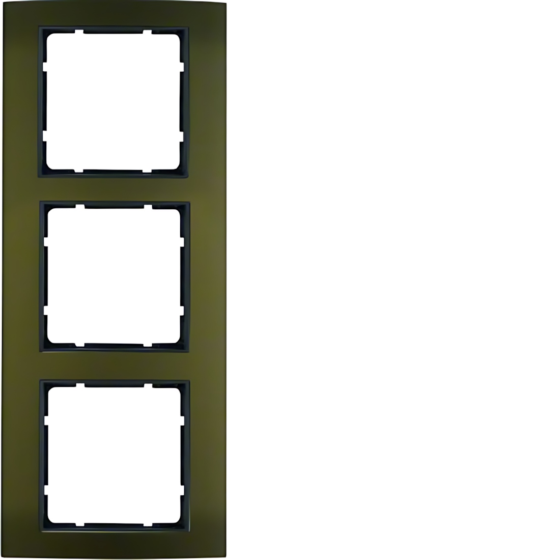 Berker 3fach Rahmen 10133001 Rahmen 3fach B.3 Alu, braun/anthrazit. Abdeckrahmen für senkrechte und waagerechte Montage. Für Verwendung von anthrazitfarbenen Zentralstücken. Unterputz-Installation, Flächen-/Designprogramm, 3-fach. Material Aluminium und Kunststoff, Thermoplast, bruchsicher, halogenfrei. Hersteller Berker Schalterprogramm EAN Nr. 4011334371618 Warengruppe Berker Serie B