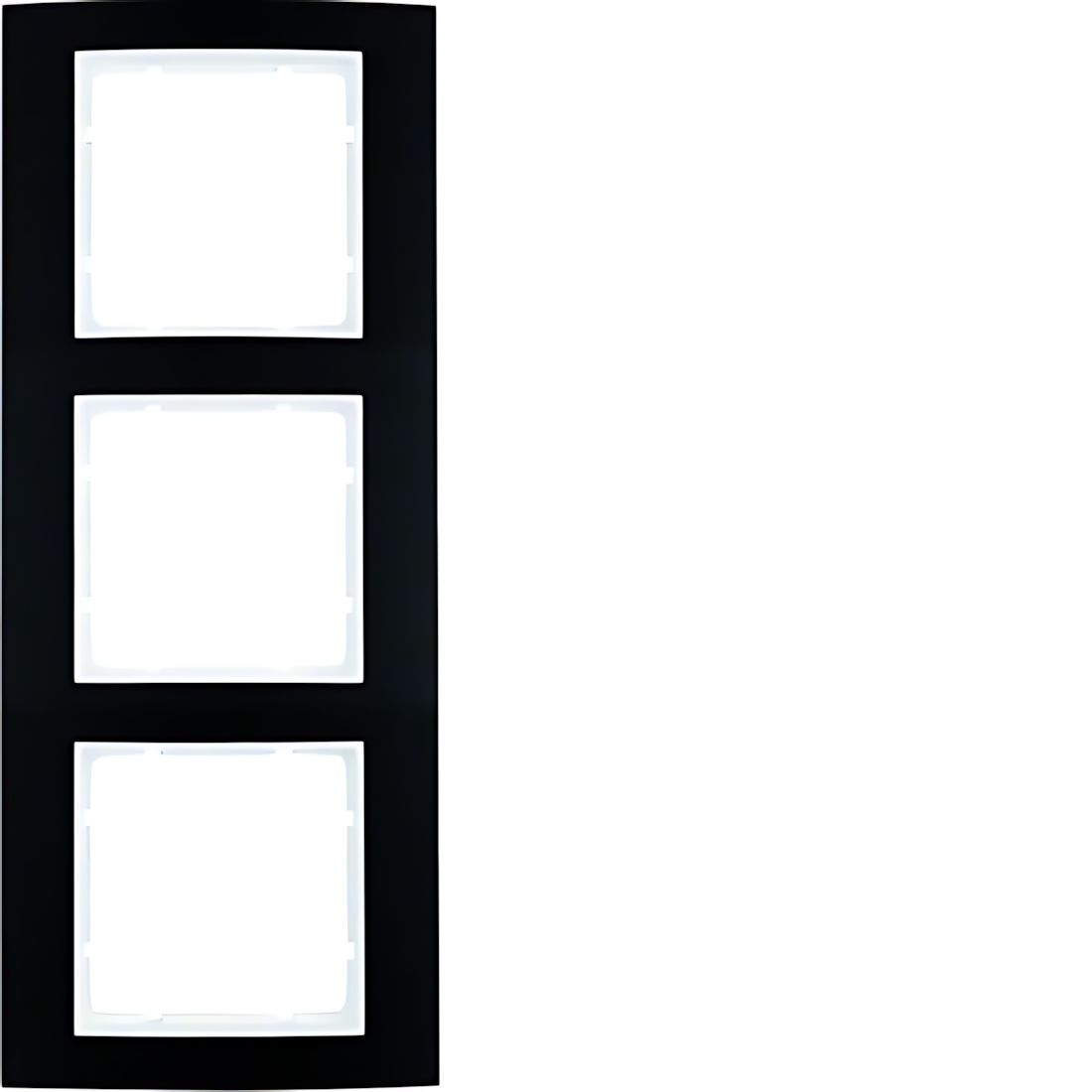 Berker 3fach Rahmen 10133025 Rahmen 3fach B.3 Alu,schwarz/polarweiß. Abdeckrahmen für senkrechte und waagerechte Montage. Für Verwendung von anthrazitfarbenen Zentralstücken. Unterputz-Installation, Flächen-/Designprogramm, 3-fach. Material Aluminium und Kunststoff, Thermoplast, bruchsicher, halogenfrei. Hersteller Berker Schalterprogramm EAN Nr. 4011334384670 Warengruppe Berker Serie B