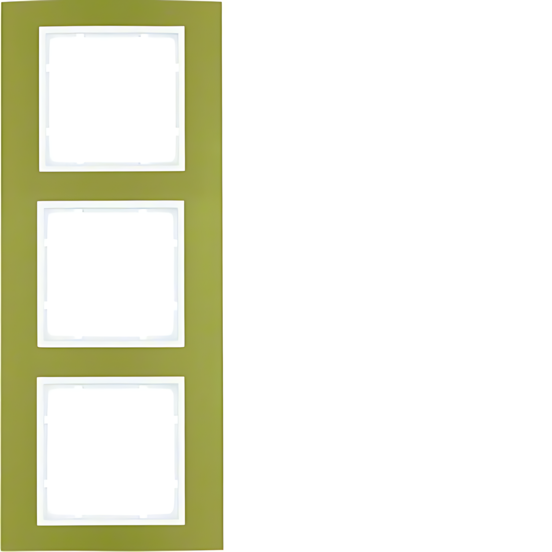 Berker 3fach Rahmen 10133046 Rahmen 3fach B.3 Alu, gold/polarweiß. Abdeckrahmen für senkrechte und waagerechte Montage. Für Verwendung von anthrazitfarbenen Zentralstücken. Unterputz-Installation, Flächen-/Designprogramm, 3-fach. Material Aluminium und Kunststoff, Thermoplast, bruchsicher, halogenfrei. Hersteller Berker Schalterprogramm EAN Nr. 4011334236603 Warengruppe Berker Serie B