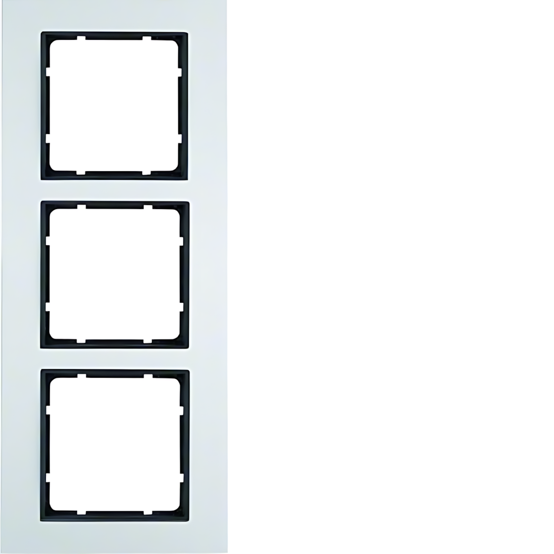 Berker 3fach Rahmen 10136904 Rahmen 3fach B.7 Alu/anthrazit. Abdeckrahmen für senkrechte und waagerechte Montage für Verwendung von Zentralstücken anthrazit, BxH 95x232mm. Unterputz-Installation, Flächen-/Designprogramm, 3-fach. Material Aluminium eloxiert und Kunststoff, Thermoplast, bruchsicher, halogenfrei. Hersteller Berker Schalterprogramm EAN Nr. 4011334372615 Warengruppe Berker Serie B