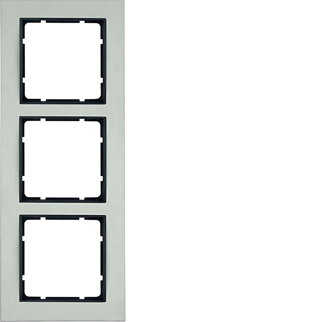 Berker 3fach Rahmen 10233606 Rahmen 3fach waagerecht B.7 Edelstahl/anthrazit. Abdeckrahmen für senkrechte und waagerechte Montage für Verwendung von Zentralstücken anthrazit, BxH 95x303mm. Unterputz-Installation, Flächen-/Designprogramm. Hersteller Berker Schalterprogramm EAN Nr. 4011334383239 Warengruppe Berker Serie B