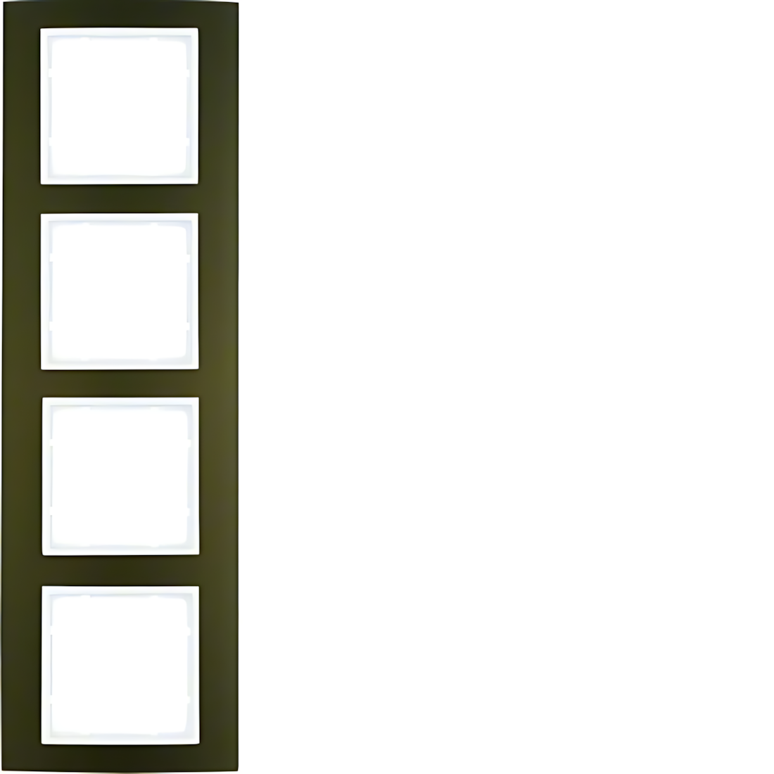 Berker 4fach Rahmen 10143021 Rahmen 4fach B.3 Alu, braun/polarweiß. Abdeckrahmen für senkrechte und waagerechte Montage. Für Verwendung von anthrazitfarbenen Zentralstücken. Unterputz-Installation, Flächen-/Designprogramm, 4-fach. Material Aluminium und Kunststoff, Thermoplast, bruchsicher, halogenfrei. Hersteller Berker Schalterprogramm EAN Nr. 4011334384748 Warengruppe Berker Serie B