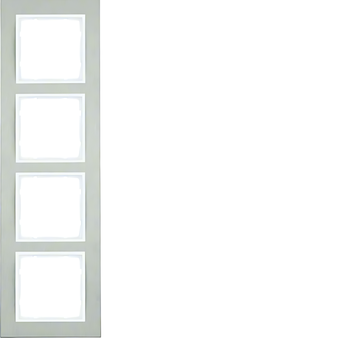 Berker 4fach Rahmen 10243609 Rahmen 4fach waagerecht B.7 Edelstahl/polarweiß. Abdeckrahmen für senkrechte und waagerechte Montage für Verwendung von Zentralstücken anthrazit, BxH 95x303mm. Unterputz-Installation, Flächen-/Designprogramm. Hersteller Berker Schalterprogramm EAN Nr. 4011334383345 Warengruppe Berker Serie B