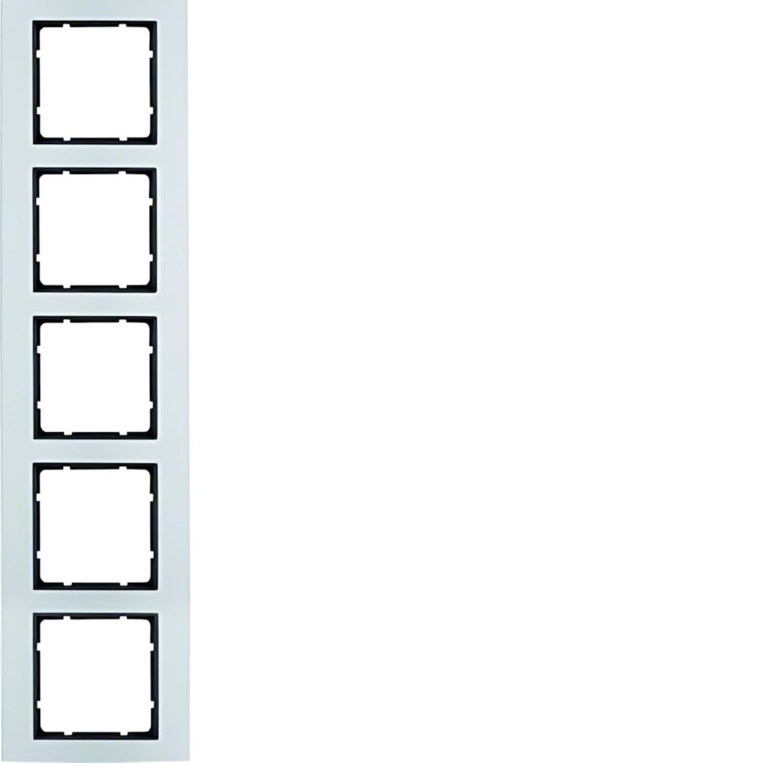 Berker 5fach Rahmen 10153004 Rahmen 5fach B.3 Alu/anthrazit. Abdeckrahmen für senkrechte und waagerechte Montage. Für Verwendung von anthrazitfarbenen Zentralstücken. Unterputz-Installation, Flächen-/Designprogramm, 5-fach. Material Aluminium und Kunststoff, Thermoplast, bruchsicher, halogenfrei. Hersteller Berker Schalterprogramm EAN Nr. 4011334223153 Warengruppe Berker Serie B