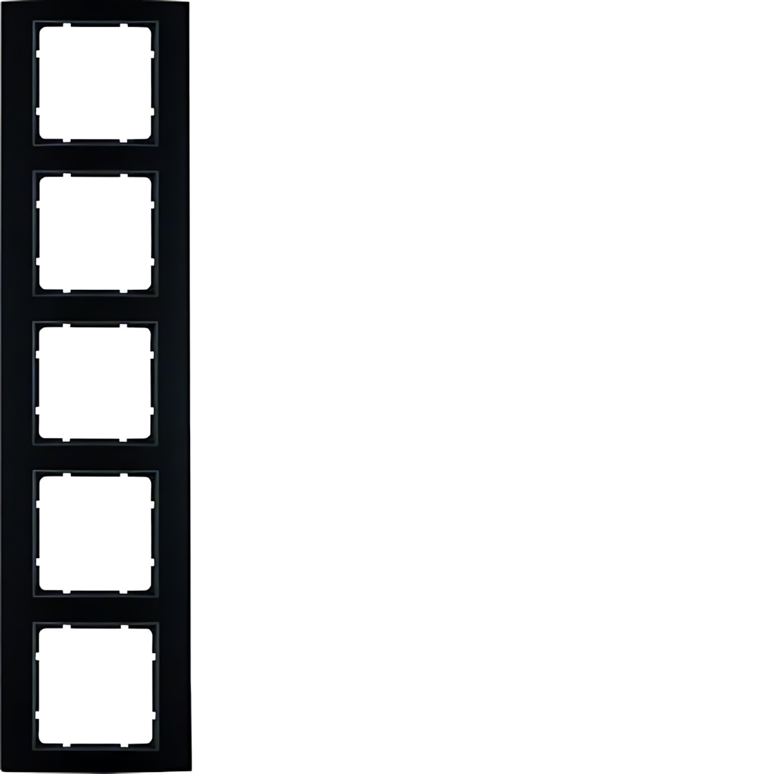Berker 5fach Rahmen 10153005 Rahmen 5fach B.3 Alu, schwarz/anthrazit. Abdeckrahmen für senkrechte und waagerechte Montage. Für Verwendung von anthrazitfarbenen Zentralstücken. Unterputz-Installation, Flächen-/Designprogramm, 5-fach. Material Aluminium und Kunststoff, Thermoplast, bruchsicher, halogenfrei. Hersteller Berker Schalterprogramm EAN Nr. 4011334371649 Warengruppe Berker Serie B