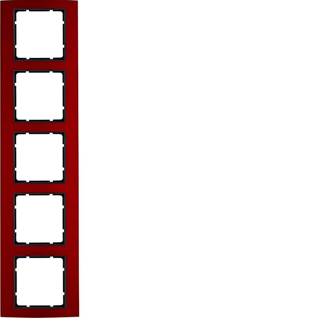 Berker 5fach Rahmen 10153012 Rahmen 5fach B.3 Alu, rot/anthrazit. Abdeckrahmen für senkrechte und waagerechte Montage. Für Verwendung von anthrazitfarbenen Zentralstücken. Unterputz-Installation, Flächen-/Designprogramm, 5-fach. Material Aluminium und Kunststoff, Thermoplast, bruchsicher, halogenfrei. Hersteller Berker Schalterprogramm EAN Nr. 4011334384878 Warengruppe Berker Serie B