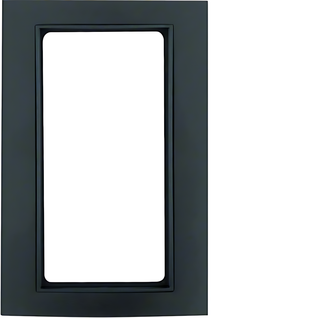 Berker Rahmen 13093005 Rahmen mit großem Ausschnitt B.3 Alu, schwarz/anthrazit. Rahmen mit großem Ausschnitt für lange Tastsensoren. Für senkrechte Montage. Unterputz-Installation, Flächen-/Designprogramm. Material Kunststoff, Thermoplast, bruchsicher, halogenfrei. Hersteller Berker Schalterprogramm EAN Nr. 4011334371663 Warengruppe Berker Serie B