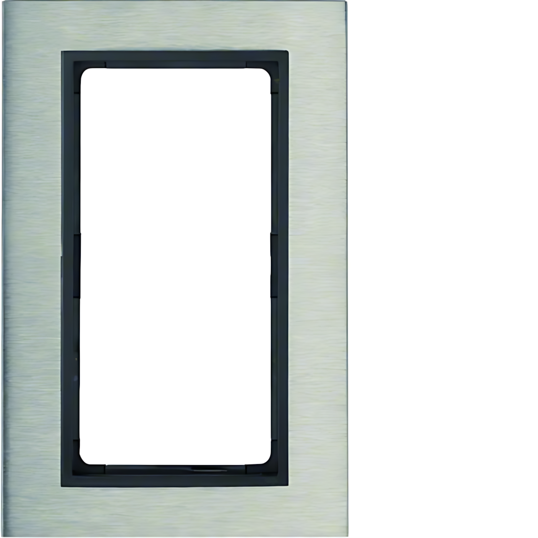 Berker Rahmen 13093606 Rahmen mit großem Ausschnitt B.7 Edelstahl/anthrazit. Metallrahmen mit großem Ausschnitt für lange Tastsensoren. Für senkrechte Montage. Unterputz-Installation, Flächen-/Designprogramm. Material Edelstahl Rostfrei, Kunststoff, Thermoplast, bruchsicher, halogenfrei. Hersteller Berker Schalterprogramm EAN Nr. 4011334385035 Warengruppe Berker Serie B